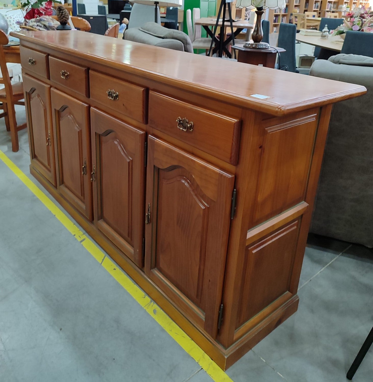 - Mueble de pino macizo, barnizado en tono miel con bonitos tiradores metálicos de argolla.