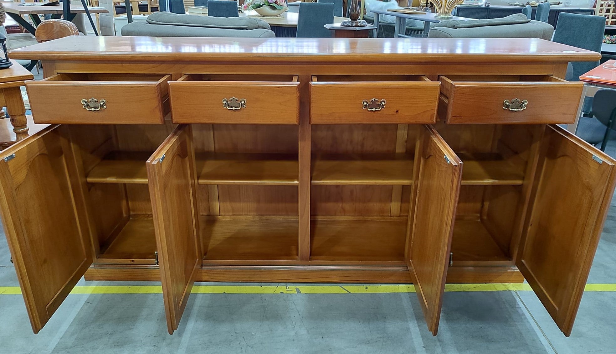 - Armario bajo con cuatro puertas y una balda interior que lo divide en dos secciones.