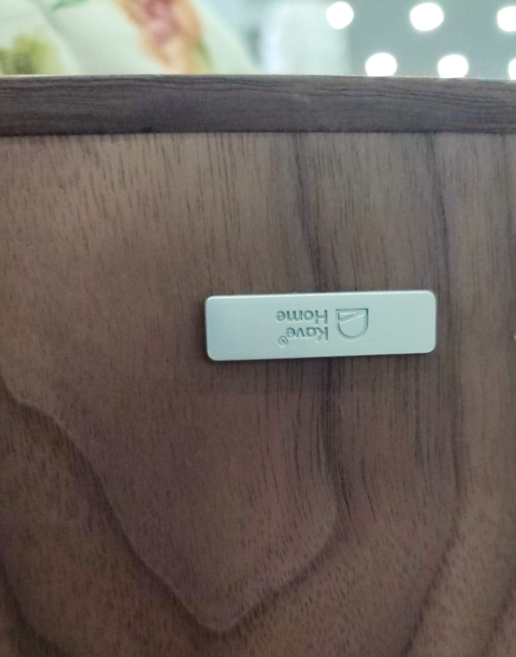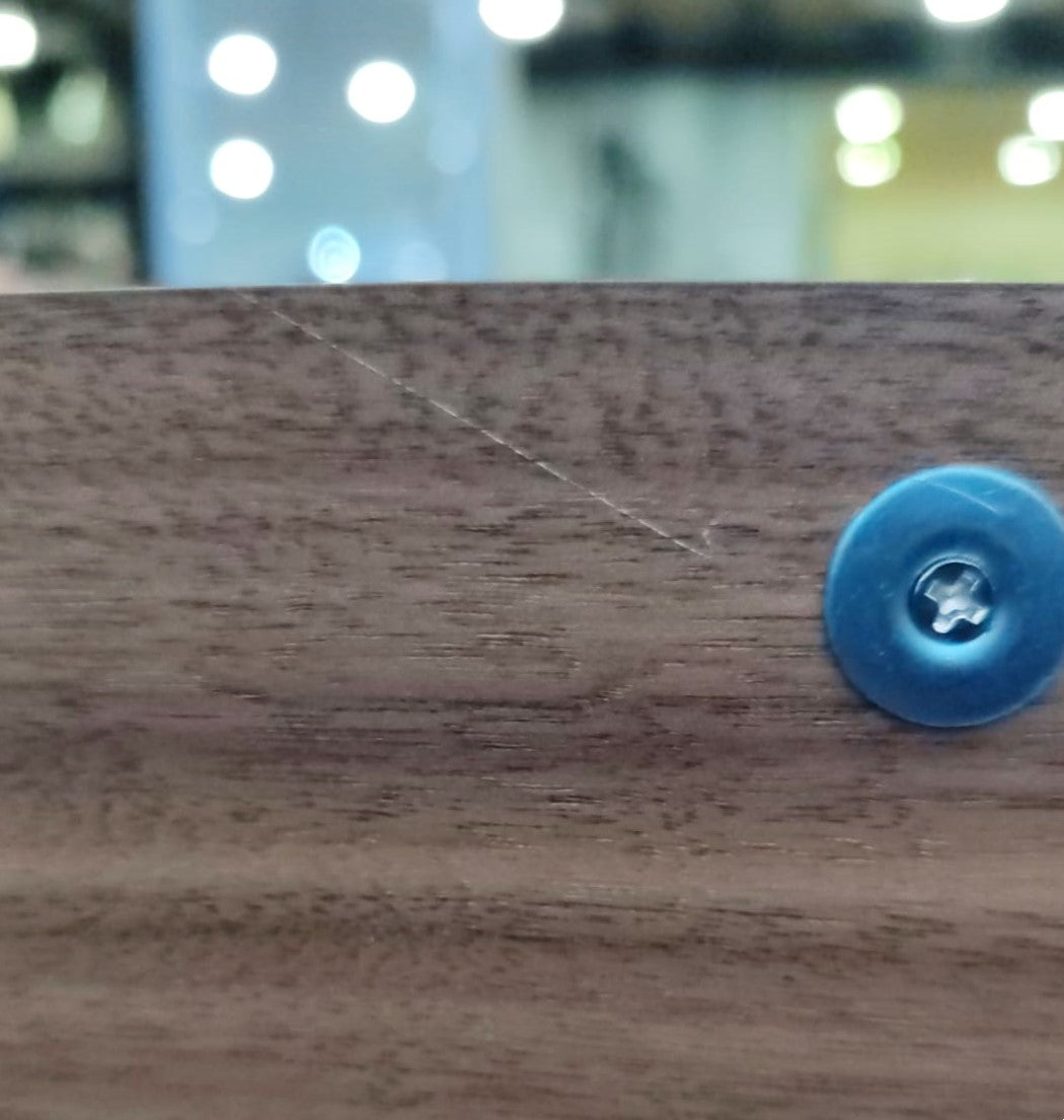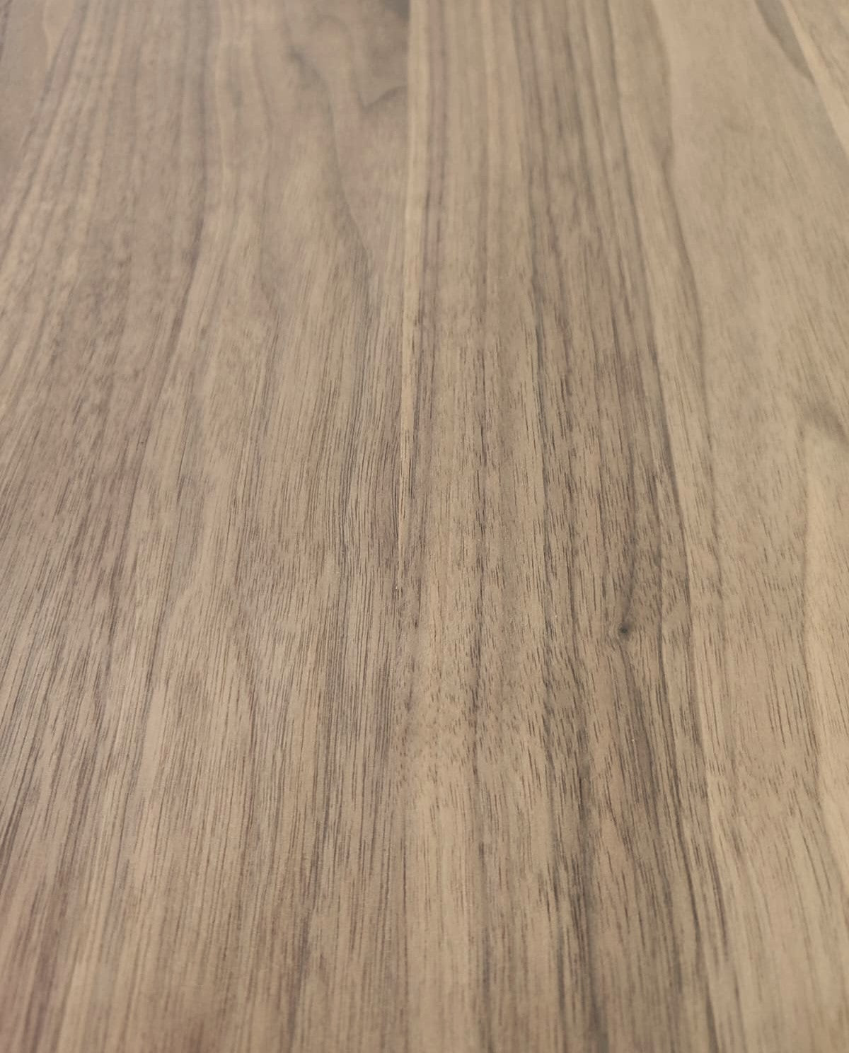 Descripción Aparador hecho de chapa de nogal. 3 puertas con apertura a presión y bisagras de cierre suave. Patas de acero regulables con acabado pintado en color antracita mate. Bandeja multiusos en la parte inferior. Defectos: Uno de los laterales se montó al revés, pero no está mal, únicamente que la chapita de la marca queda al revés. Tiene un pequeño rasguño en el interior de una de las puertas.