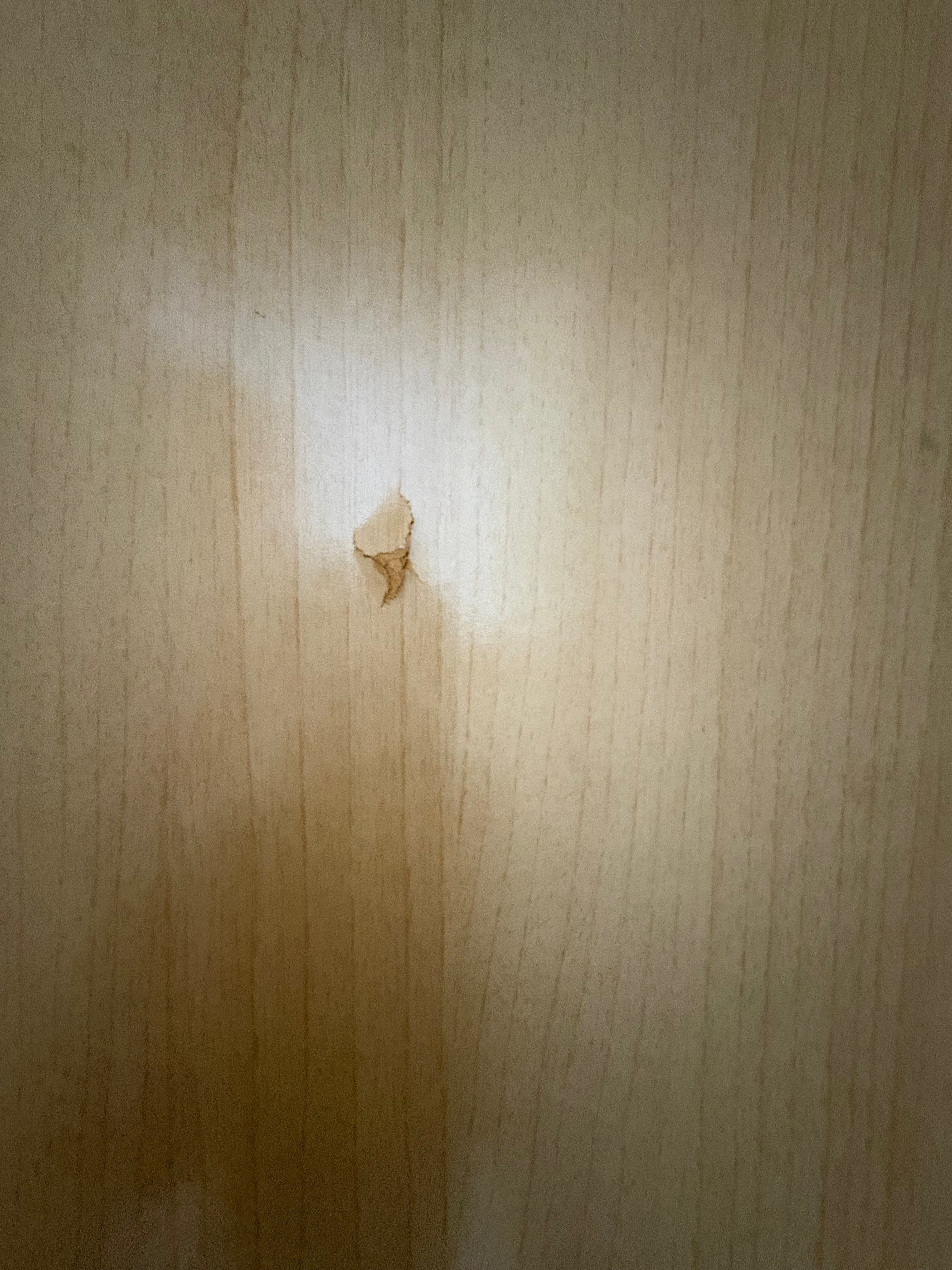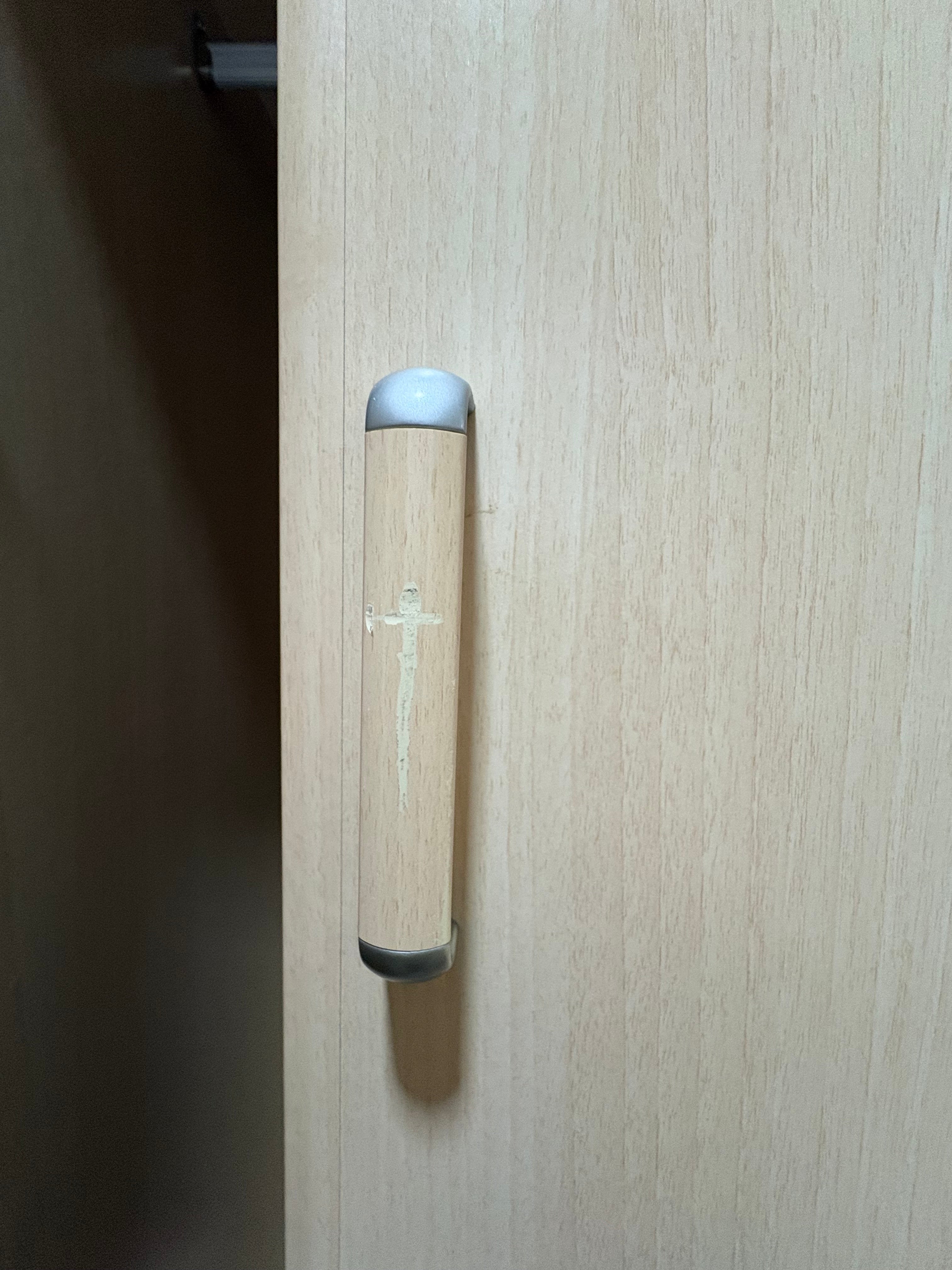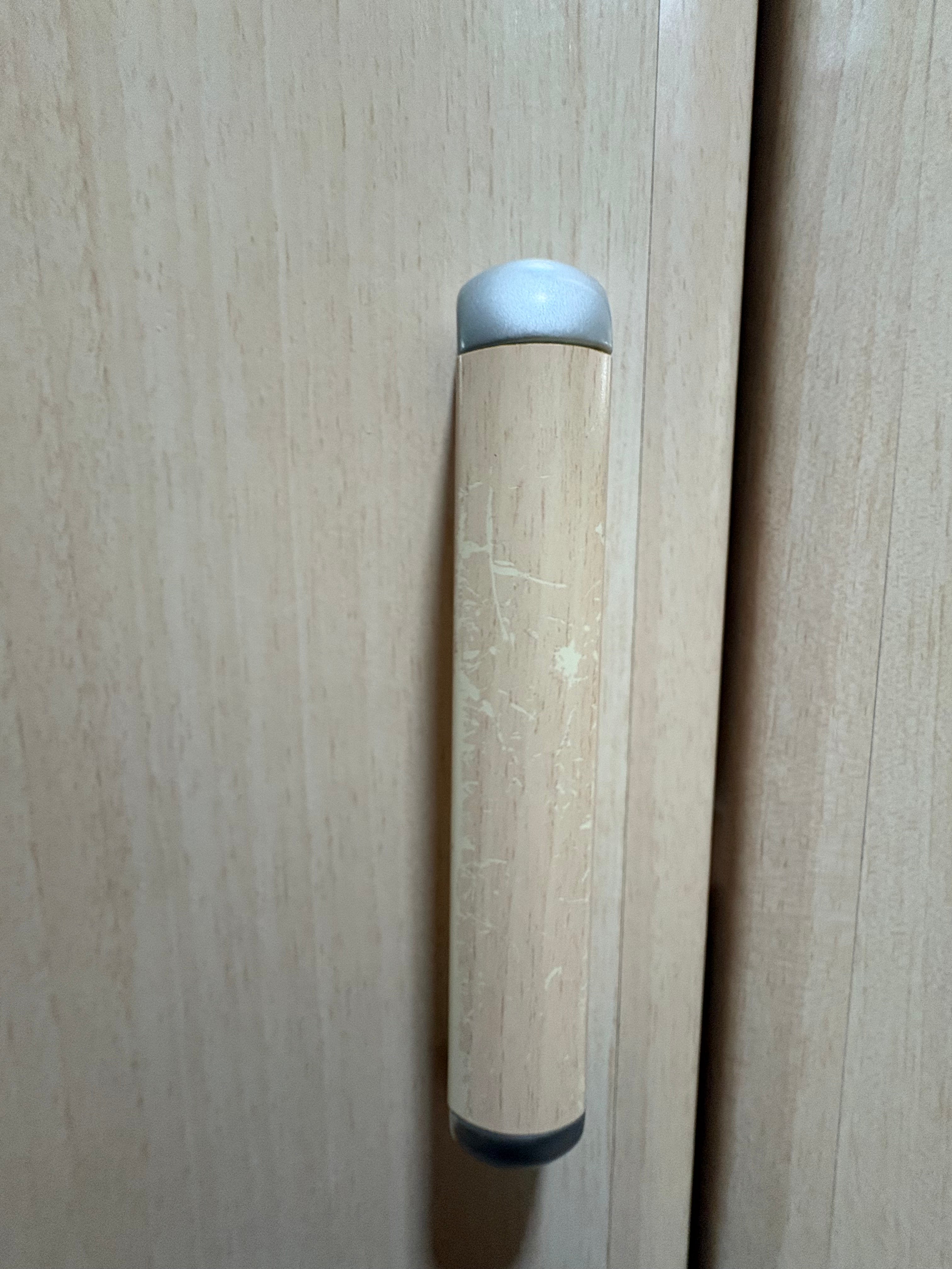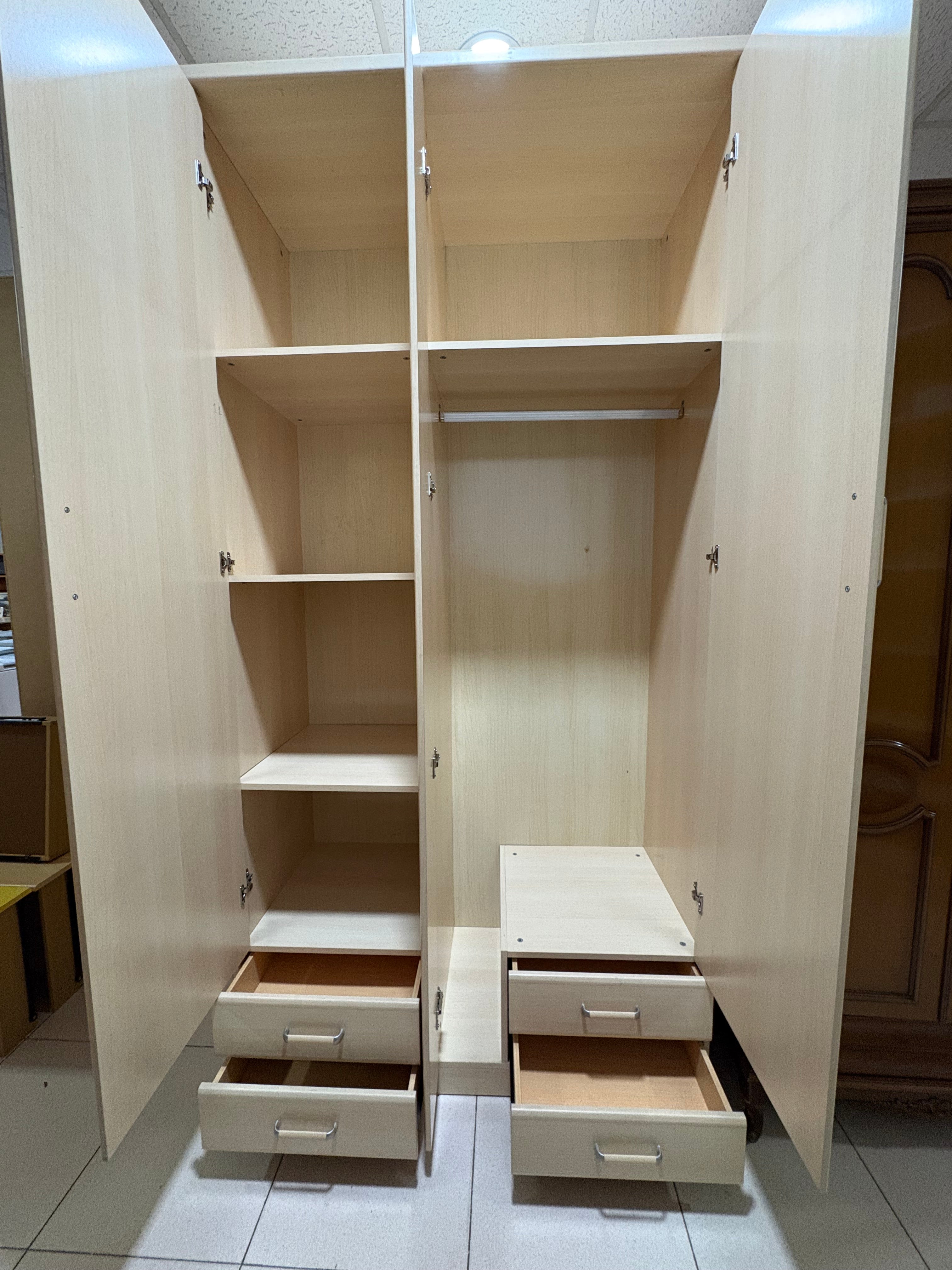 Armario de tres puertas y cuatro cajones en la parte inferior. Su diseño es sencillo y funcional.