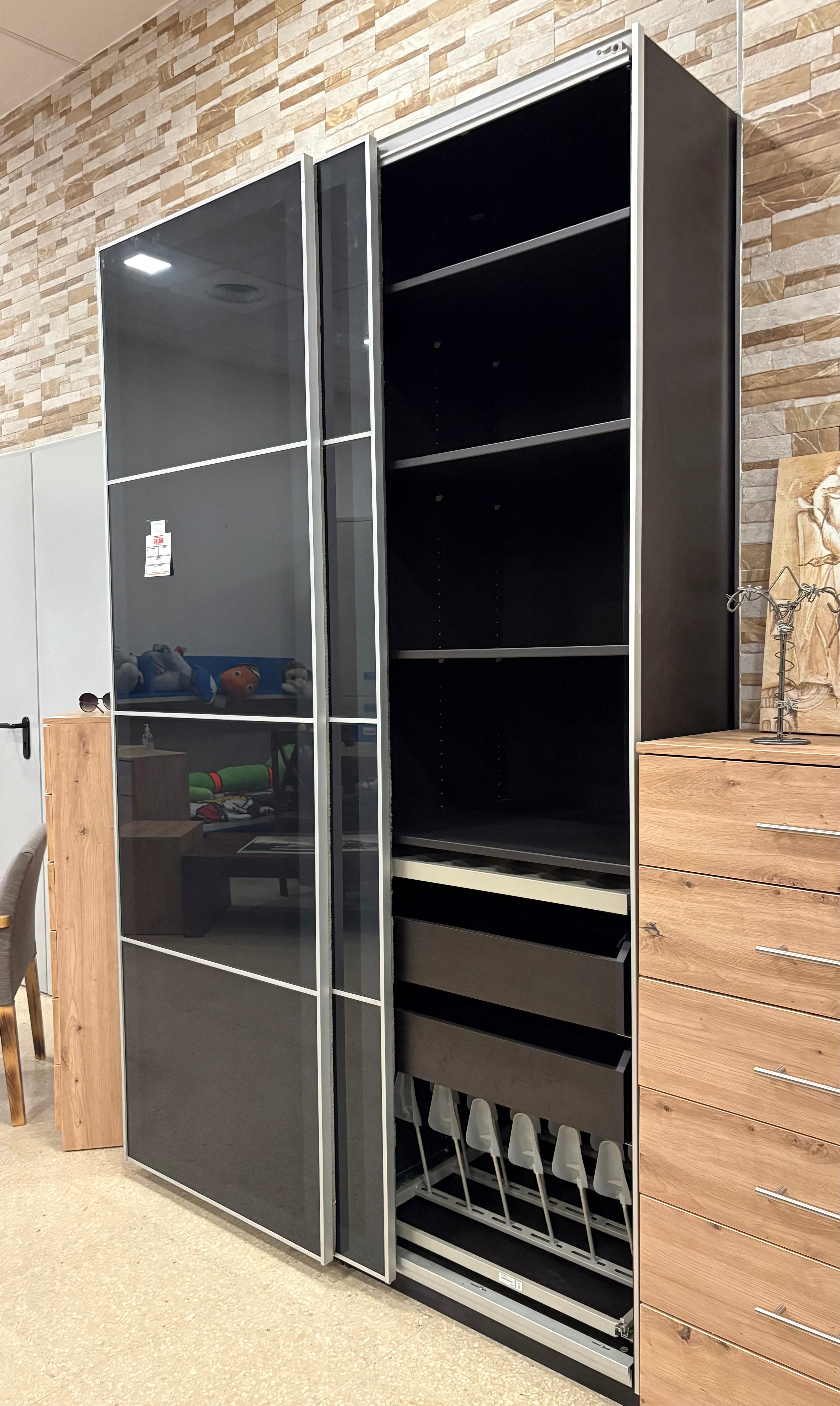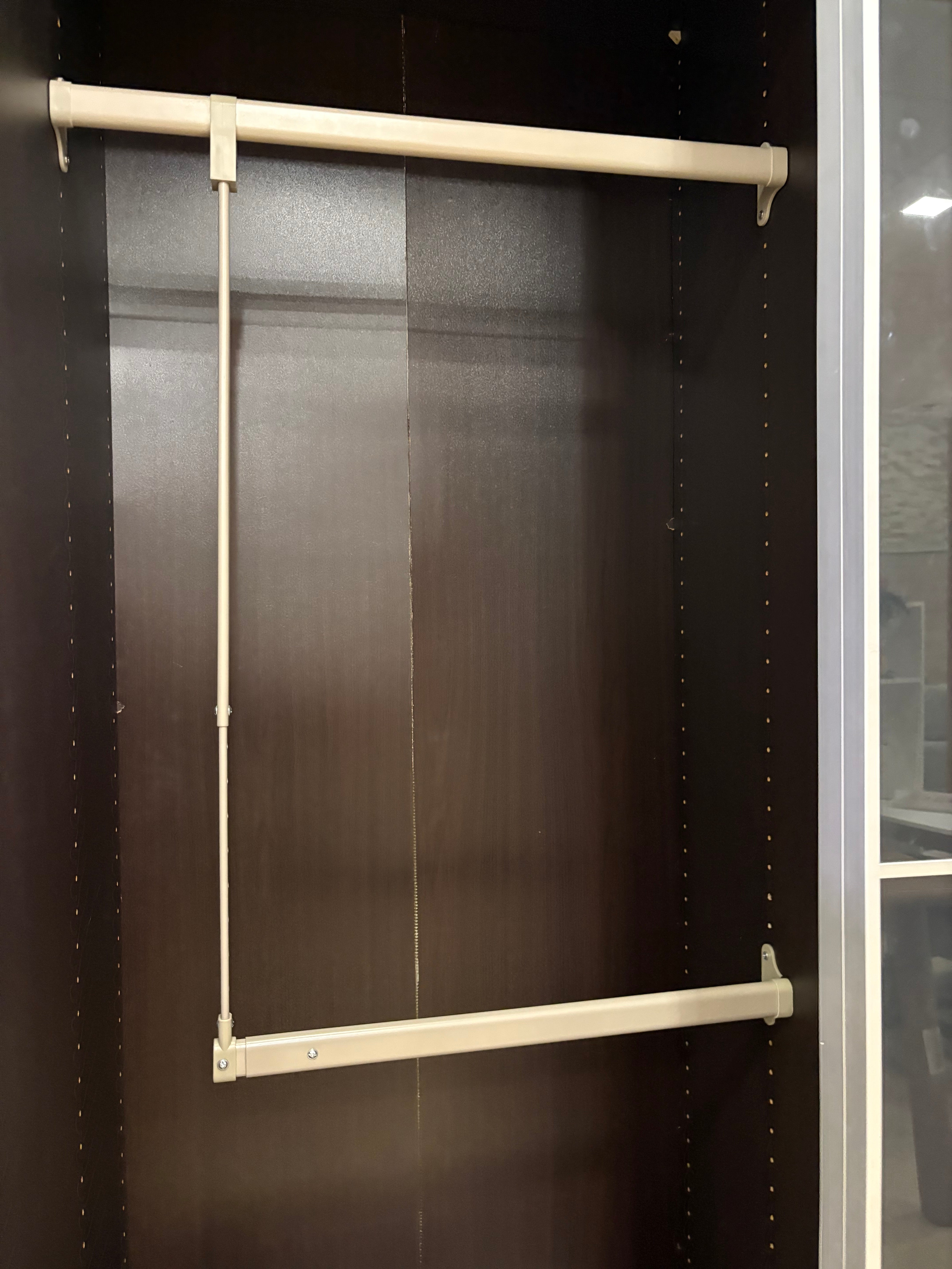 - Sección izquierda con altillo, barras para ropa y cajón inferior.