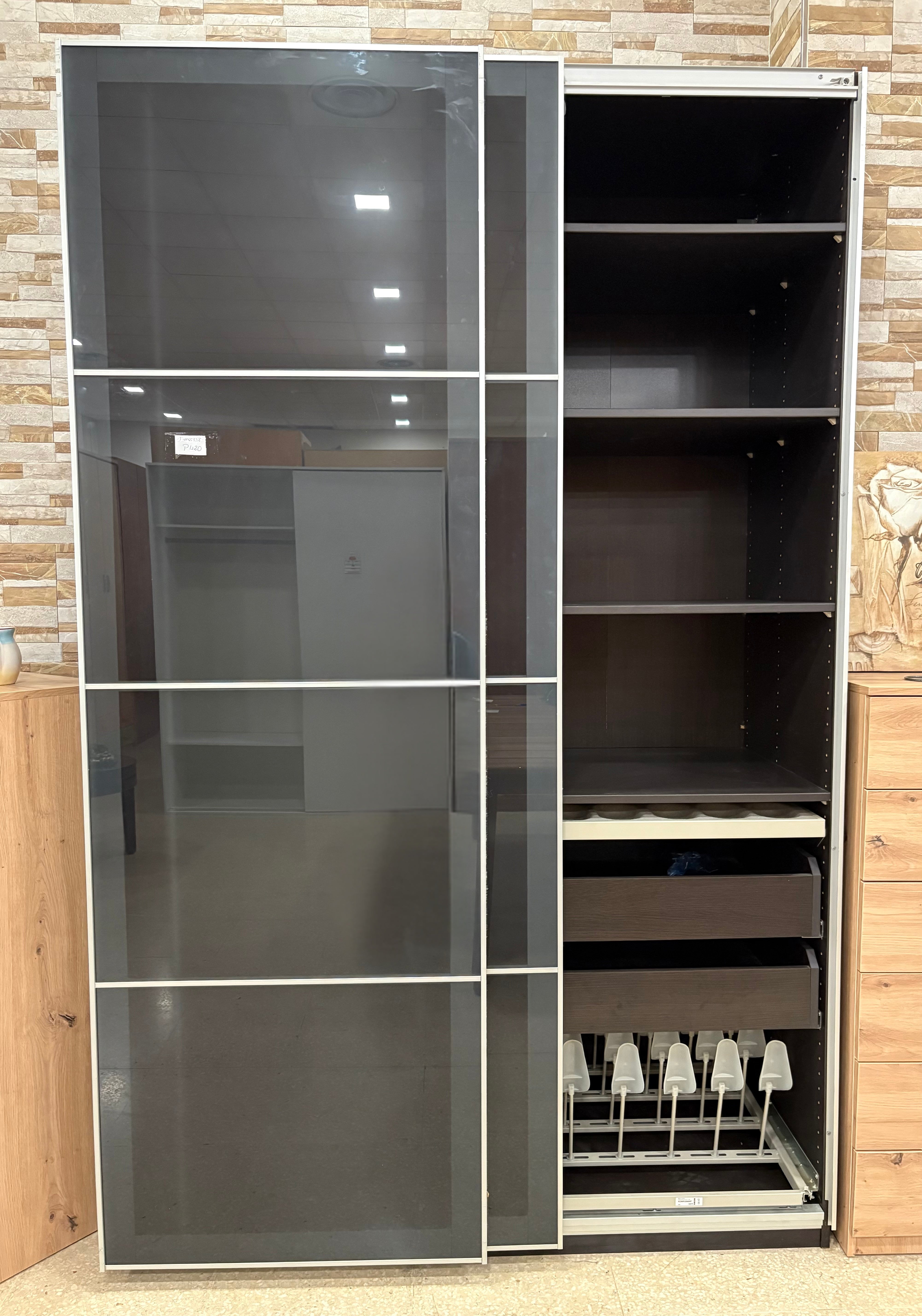 - Sección derecha con cuatro estanterías, una bandeja especial para joyeria, dos cajones y zapatero para 10 pares de zapatos.