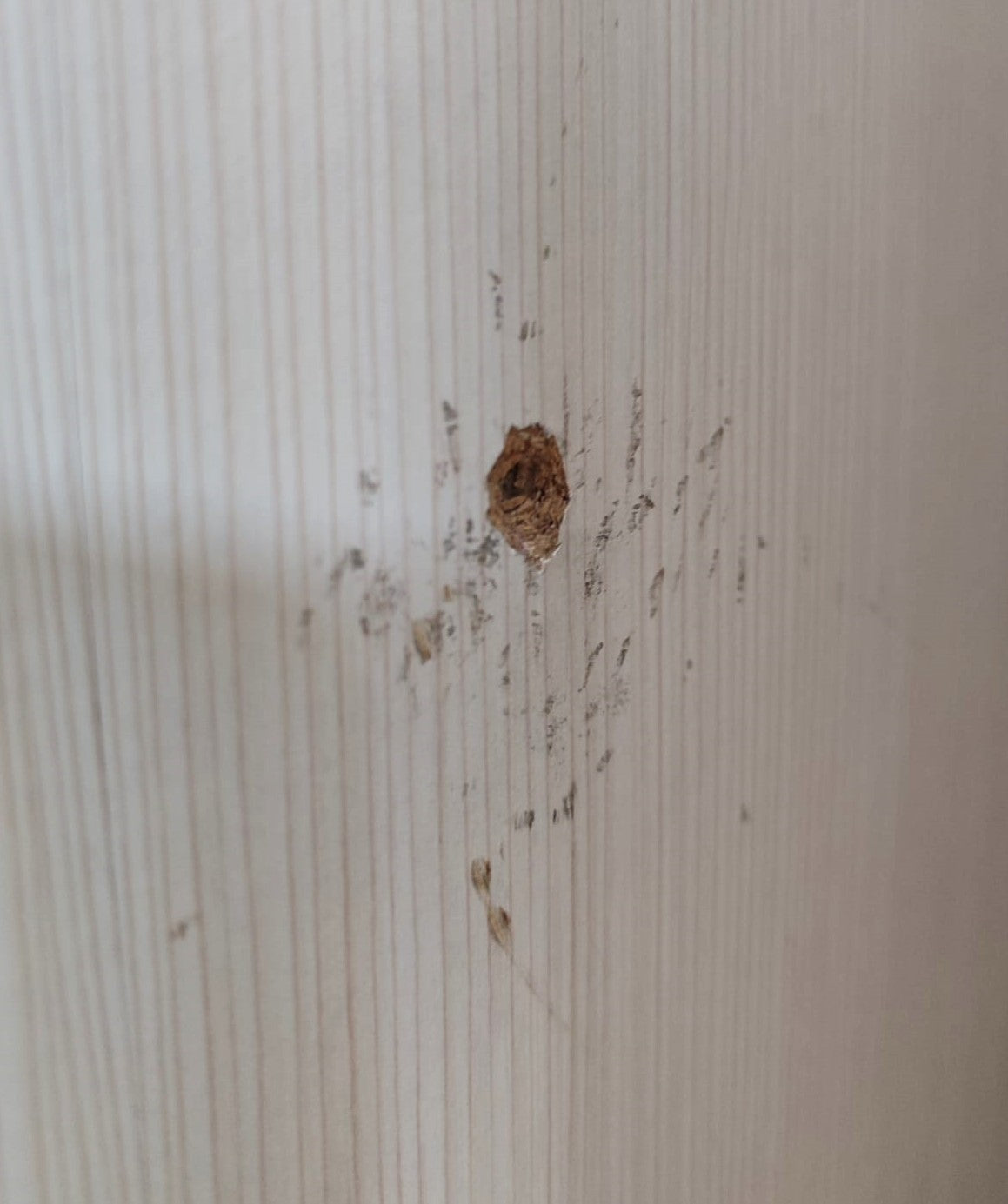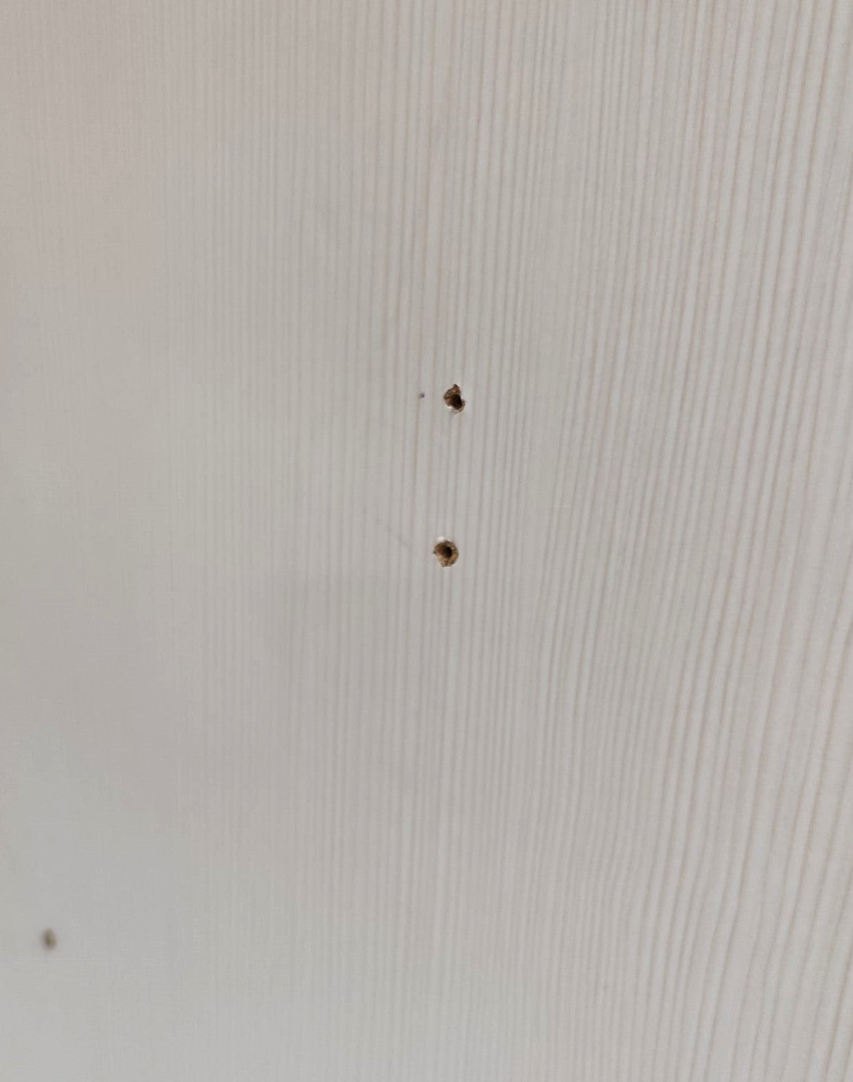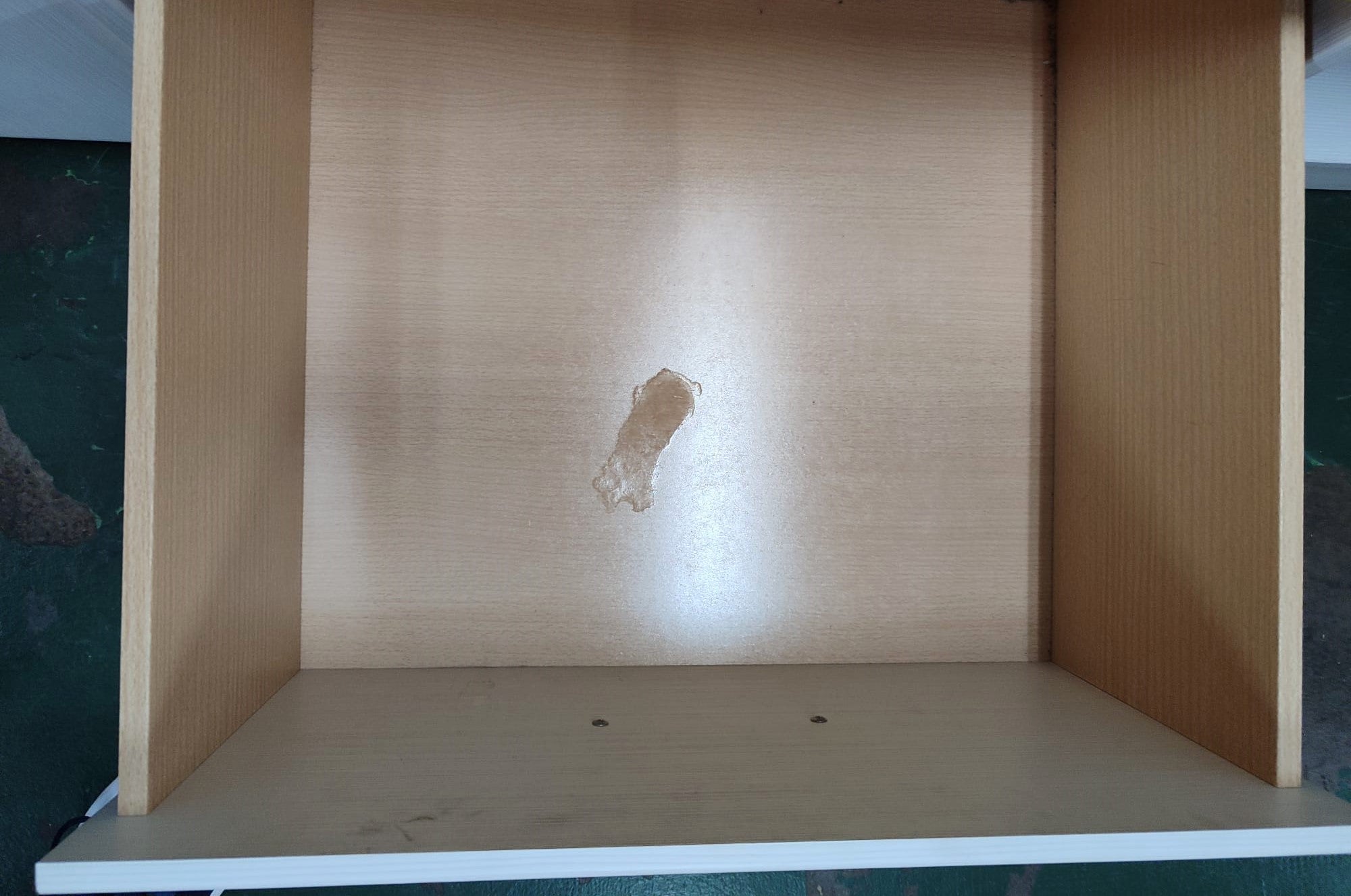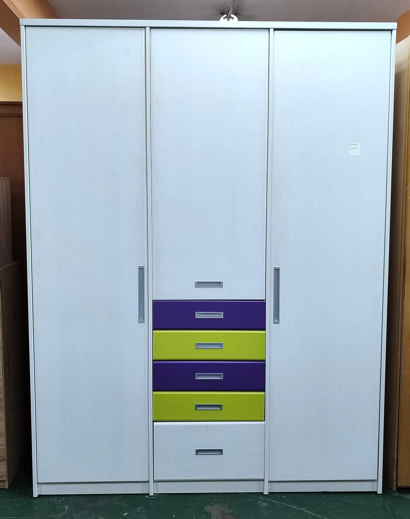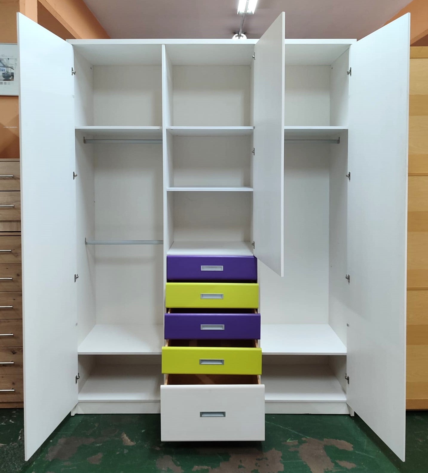 - Armario de puertas abatibles, hecho de madera aglomerada con acabados de melamina.
