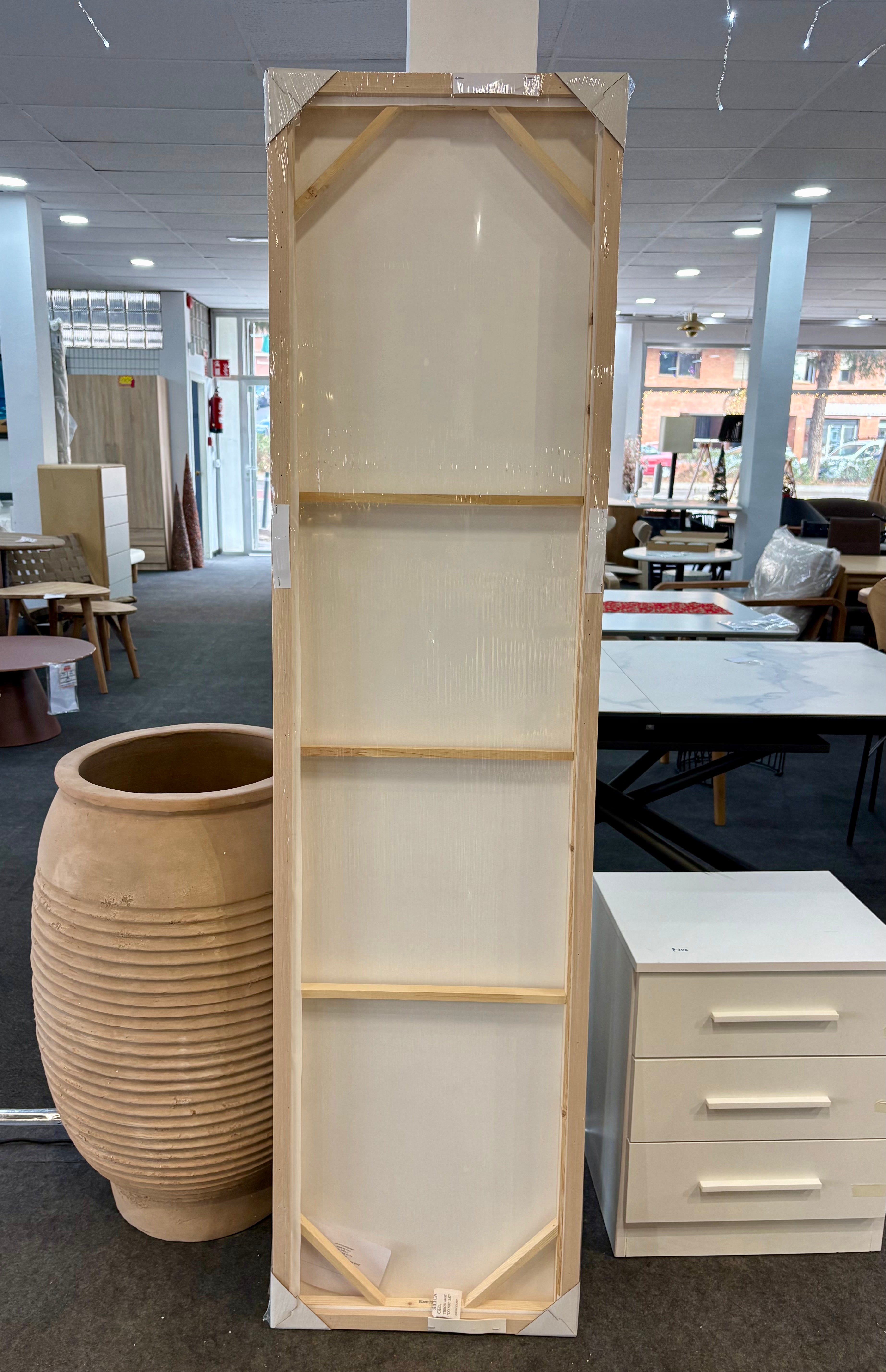 - Cuadro decorativo con un diseño abstracto en tonos beige y marrones.