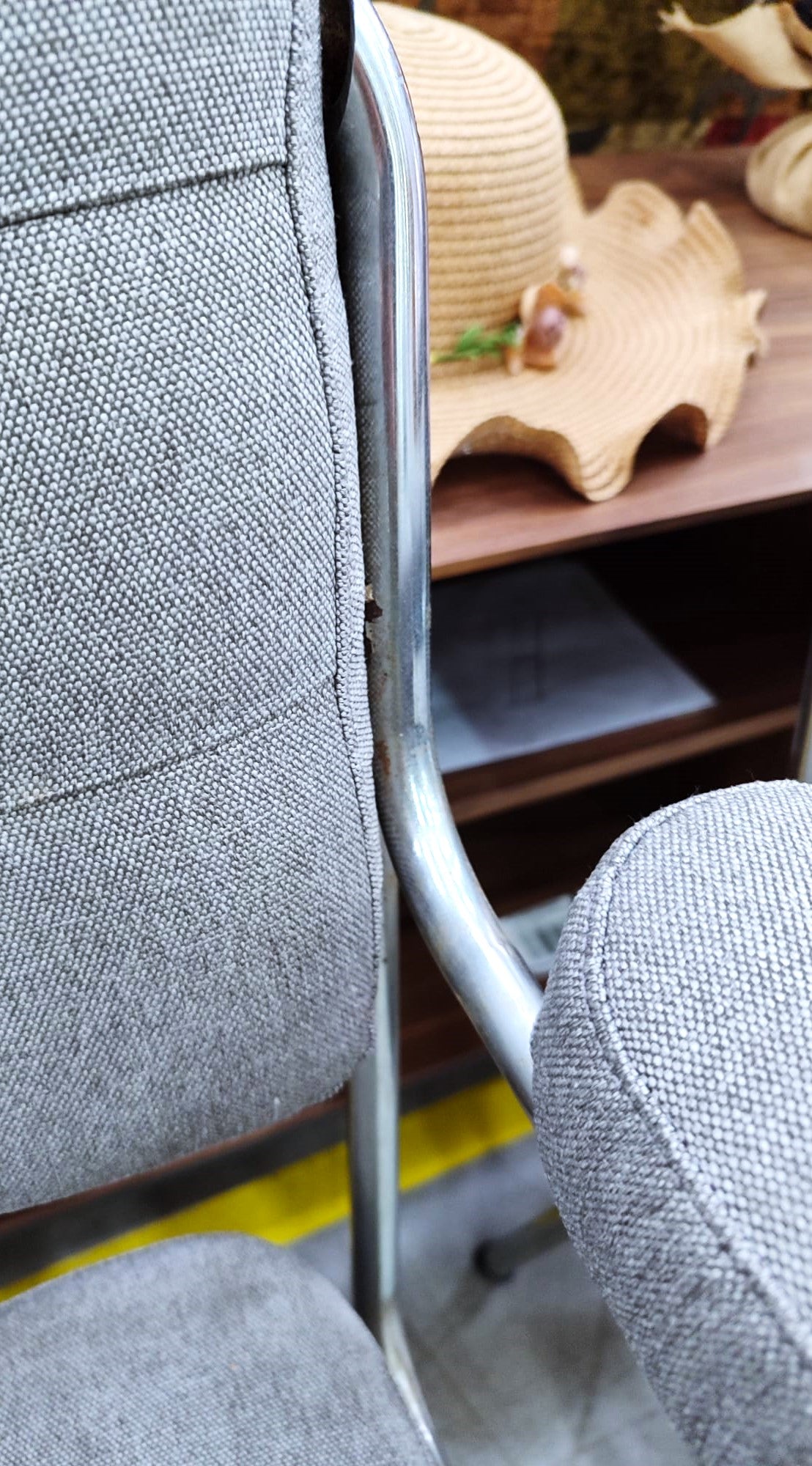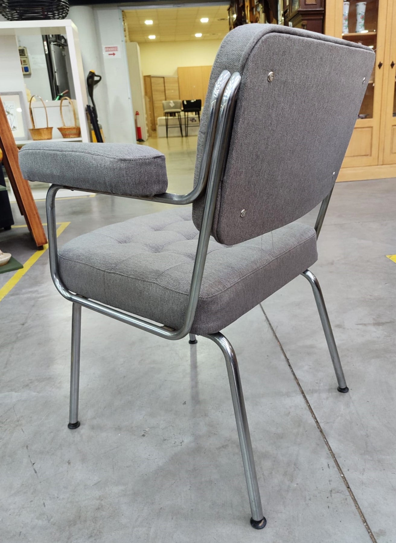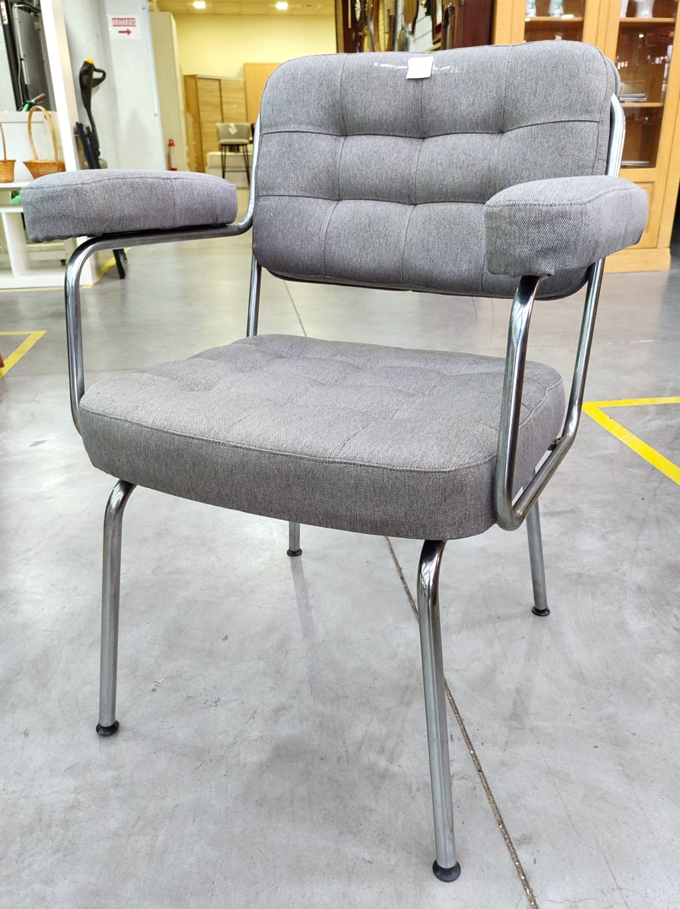 Descripción Sillas de oficina muy cómodas. Estructura metálica cromada. Respaldo alto con acabado capitoné. Reposabrazos almohadillado. Asiento ancho, cómodo y acolchado.