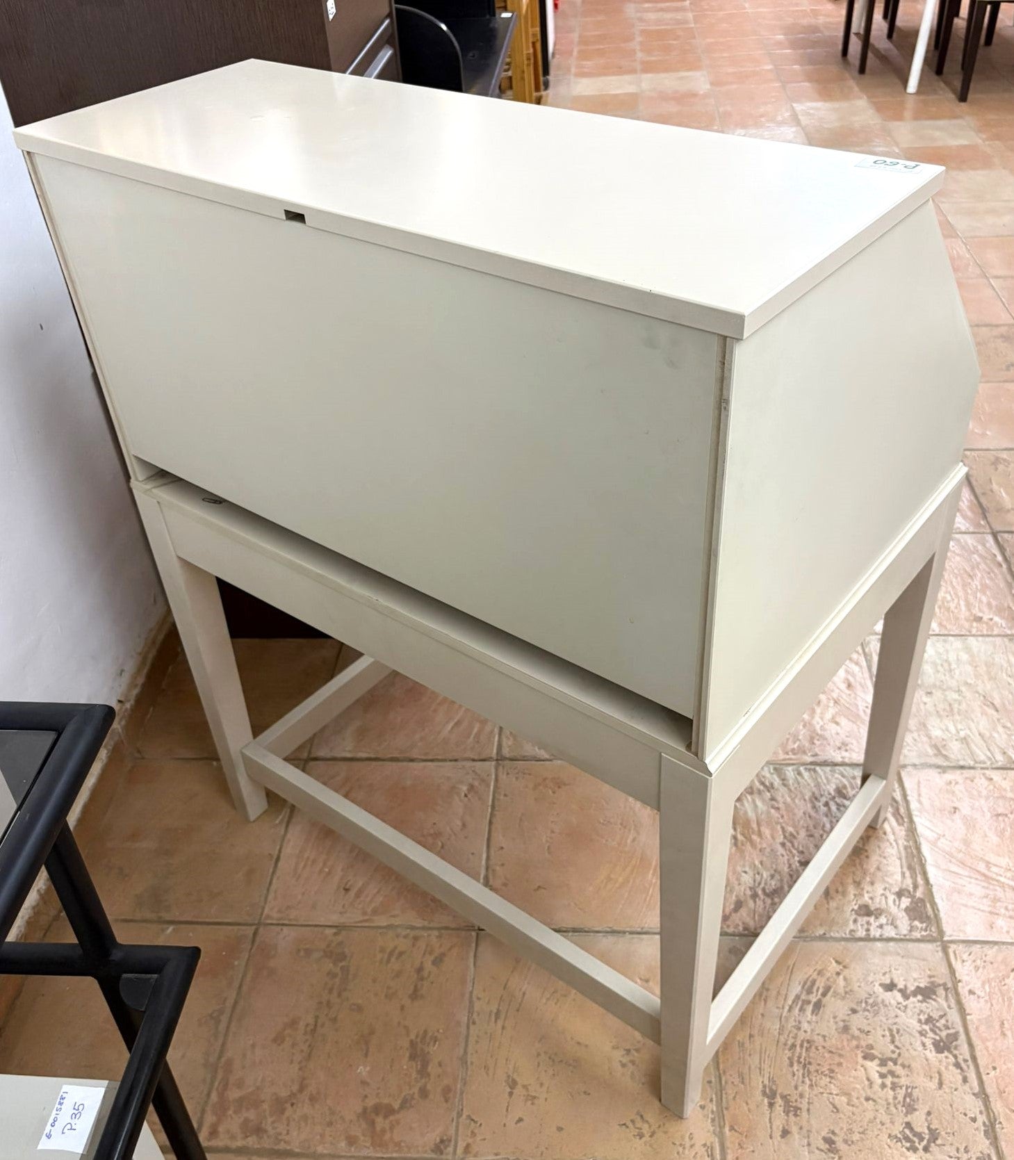 Descripción Un mueble clásico con acabado moderno, hecho de chapa de madera. Puerta elevable para improvisar un escritorio de 37x78 cm Interior espacioso para guardar artículos de papelería que necesites. Un cajón auxiliar.