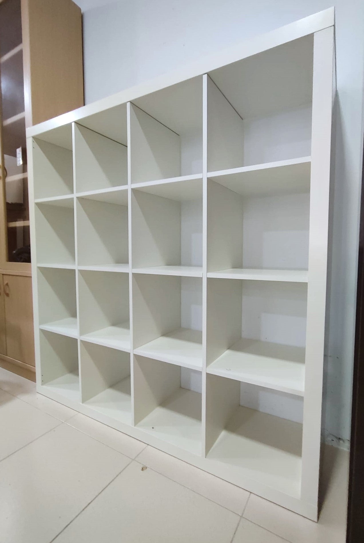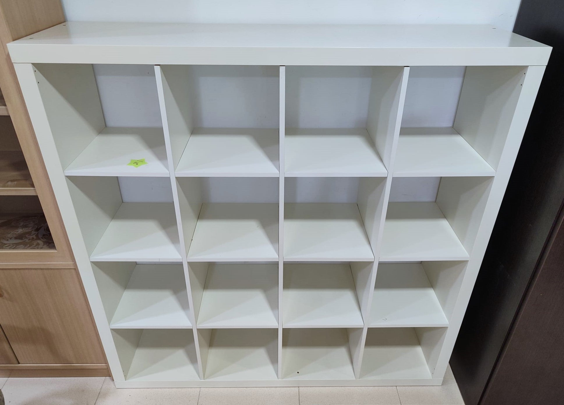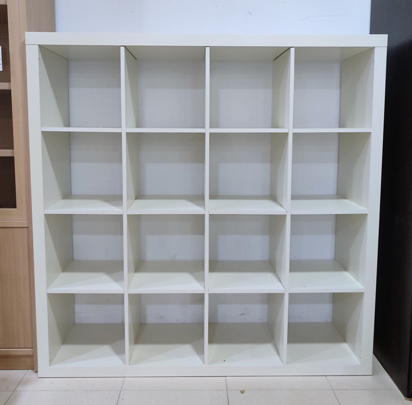 Descripción Estantería o separador de ambientes muy versátil en uso. Hecha de tablero de fibras y cartón nido de abeja resistente. Dispone de 16 compartimentos de 33,5x33,5cm