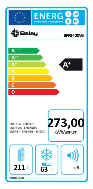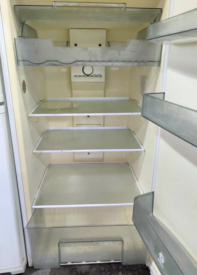 Frigorífico con 3 estantes y 3 estantes de puerta, un cajón super frío especial para carne, pescado y marisco y un cajón inferior para frutas y verduras.