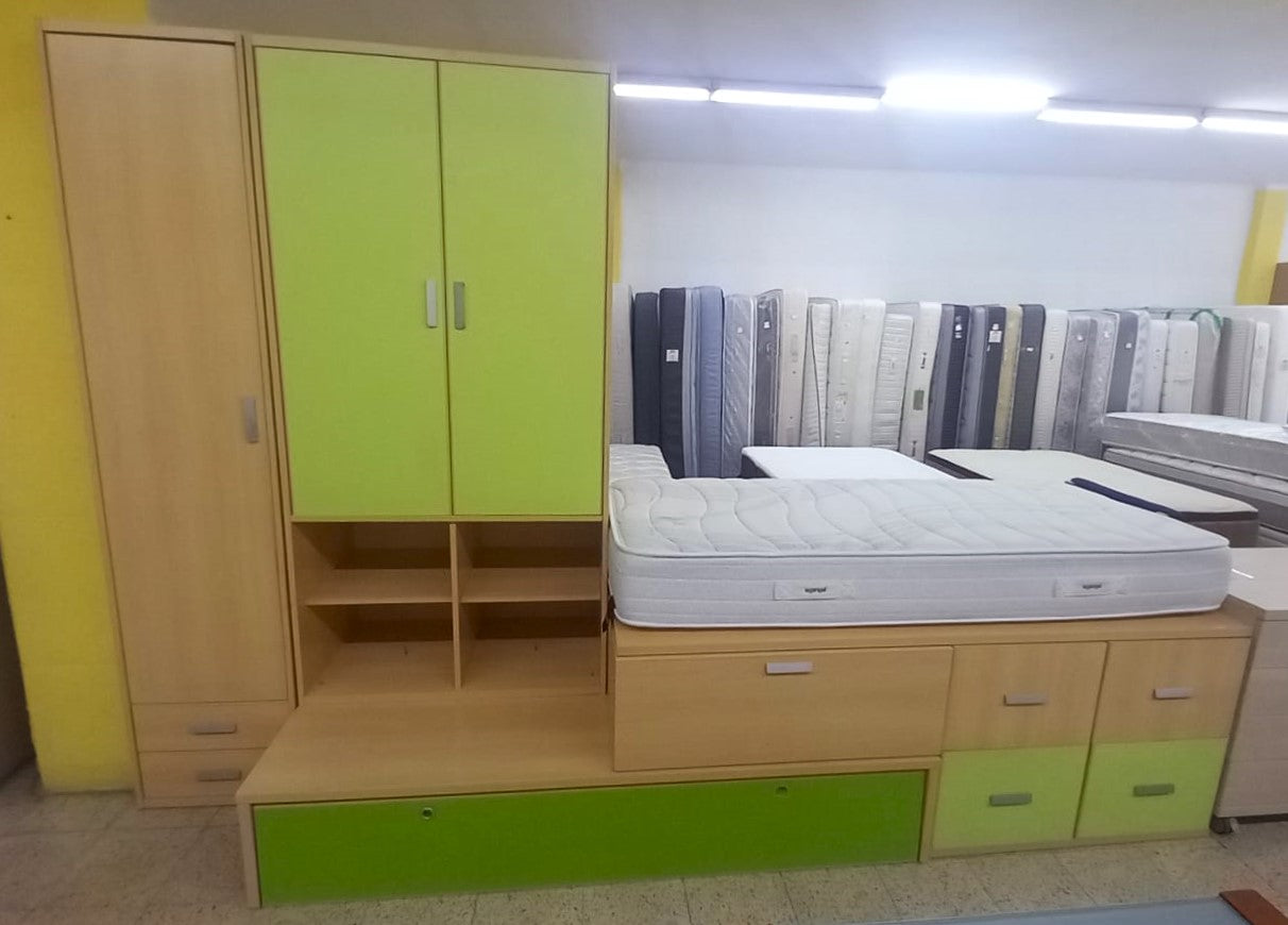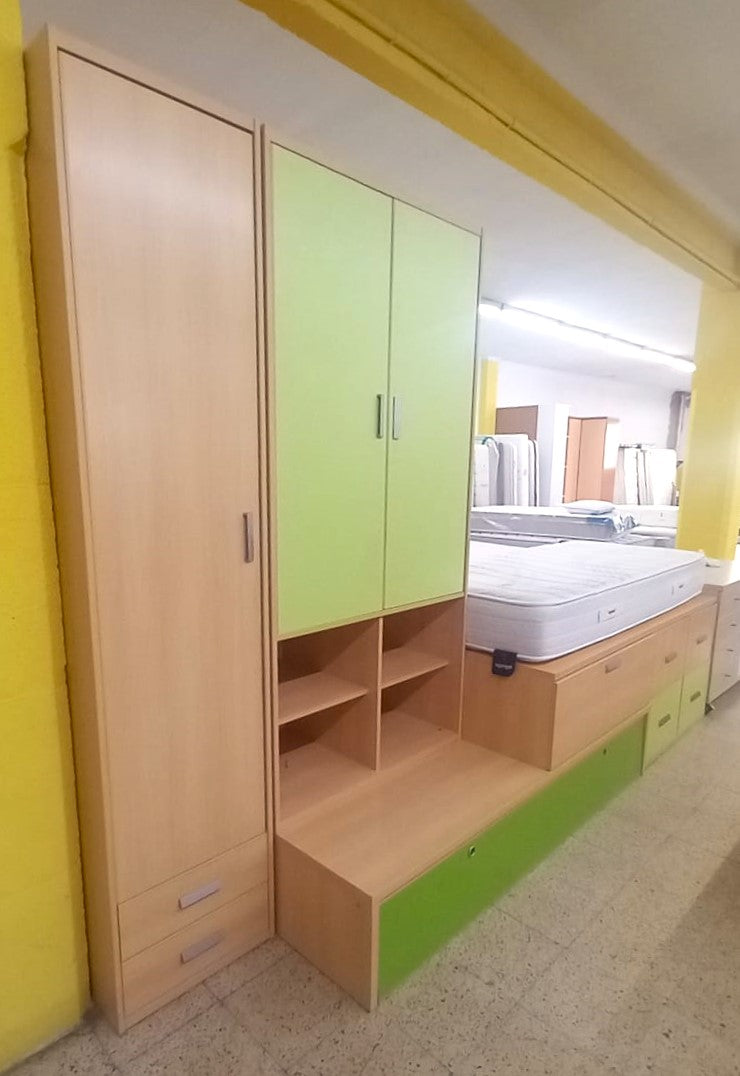 Descripción Conjunto de muebles para habitación juvenil, hechos de madera aglomerada, con acabados de melamina, estilo y colores vivos y modernos. Dos camas, la principal mide 90x200cm y la auxiliar 80x180cm. Colchones ¡INCLUÍDOS! Dos armarios con múltiples compartimentos, barra para ropa y dos pequeños cajones. También dispone de 4 cajones amplios y un compartimento de puerta elevable.