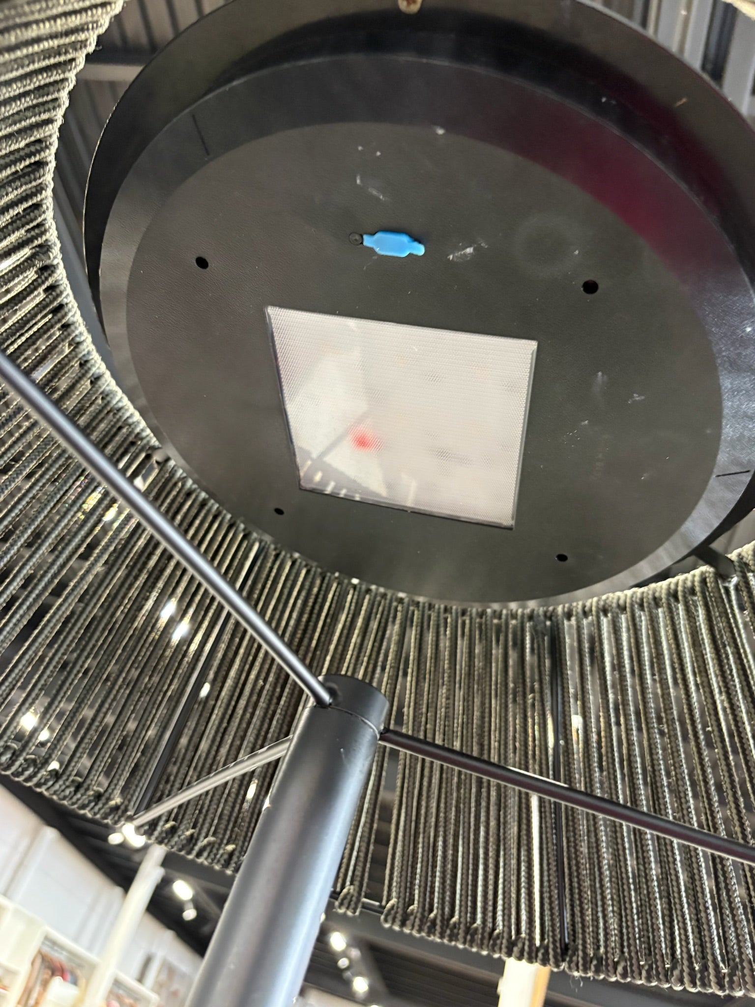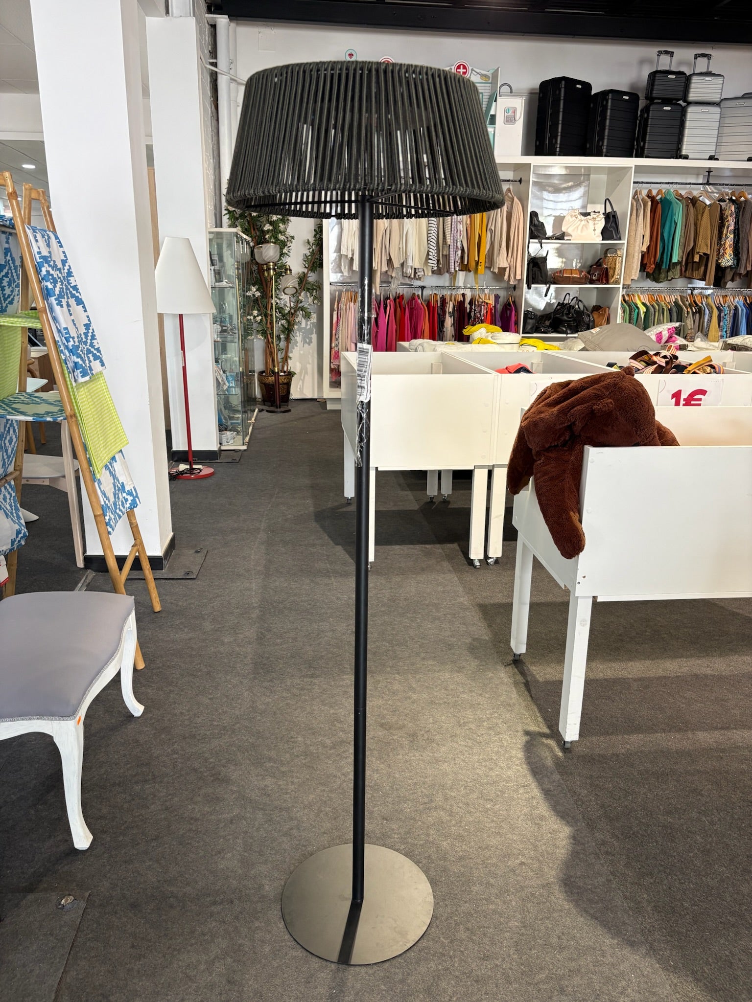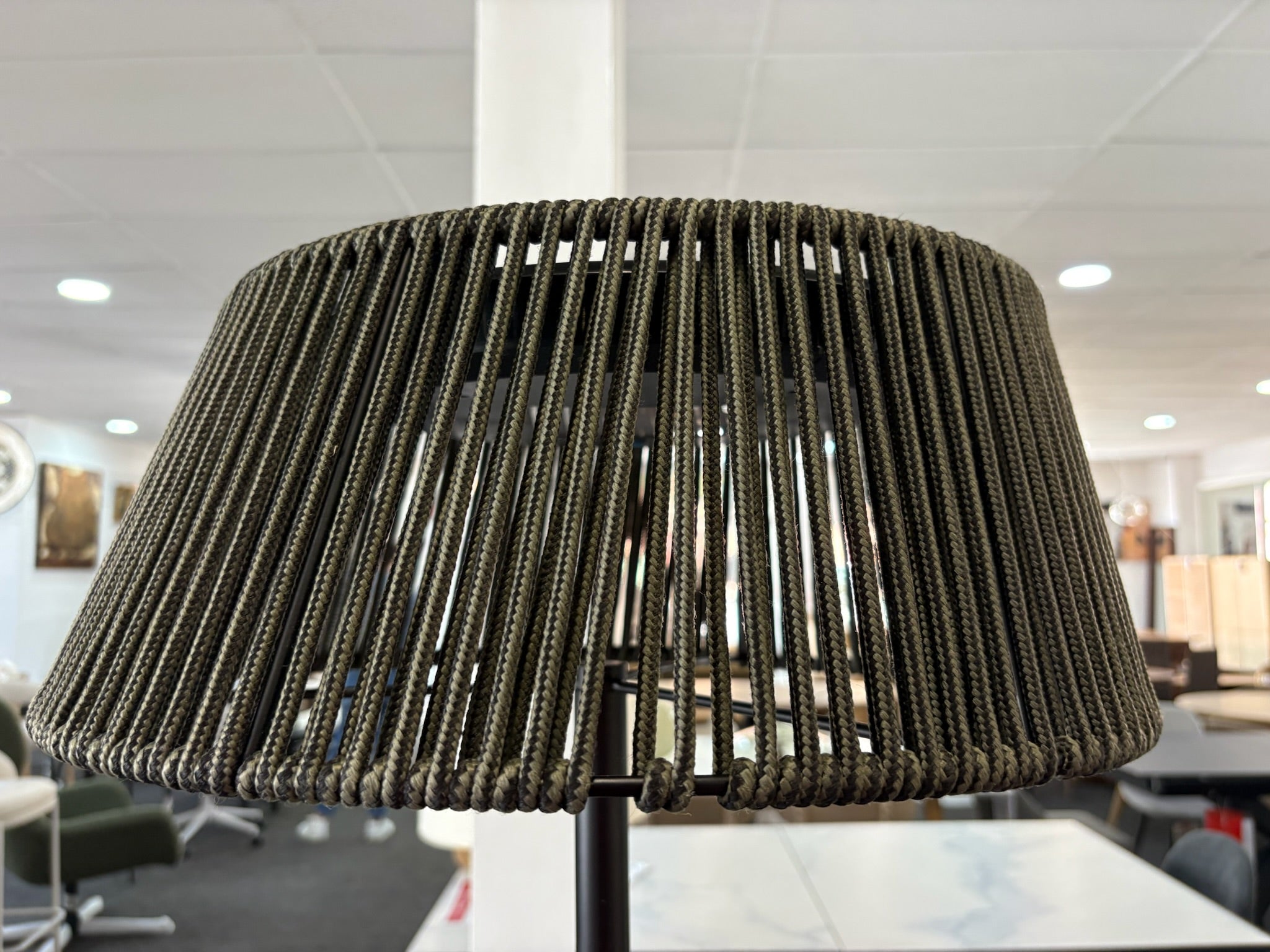 Lámpara de pie solar portátil con pantalla de cuerda jaspeada negro y verde.