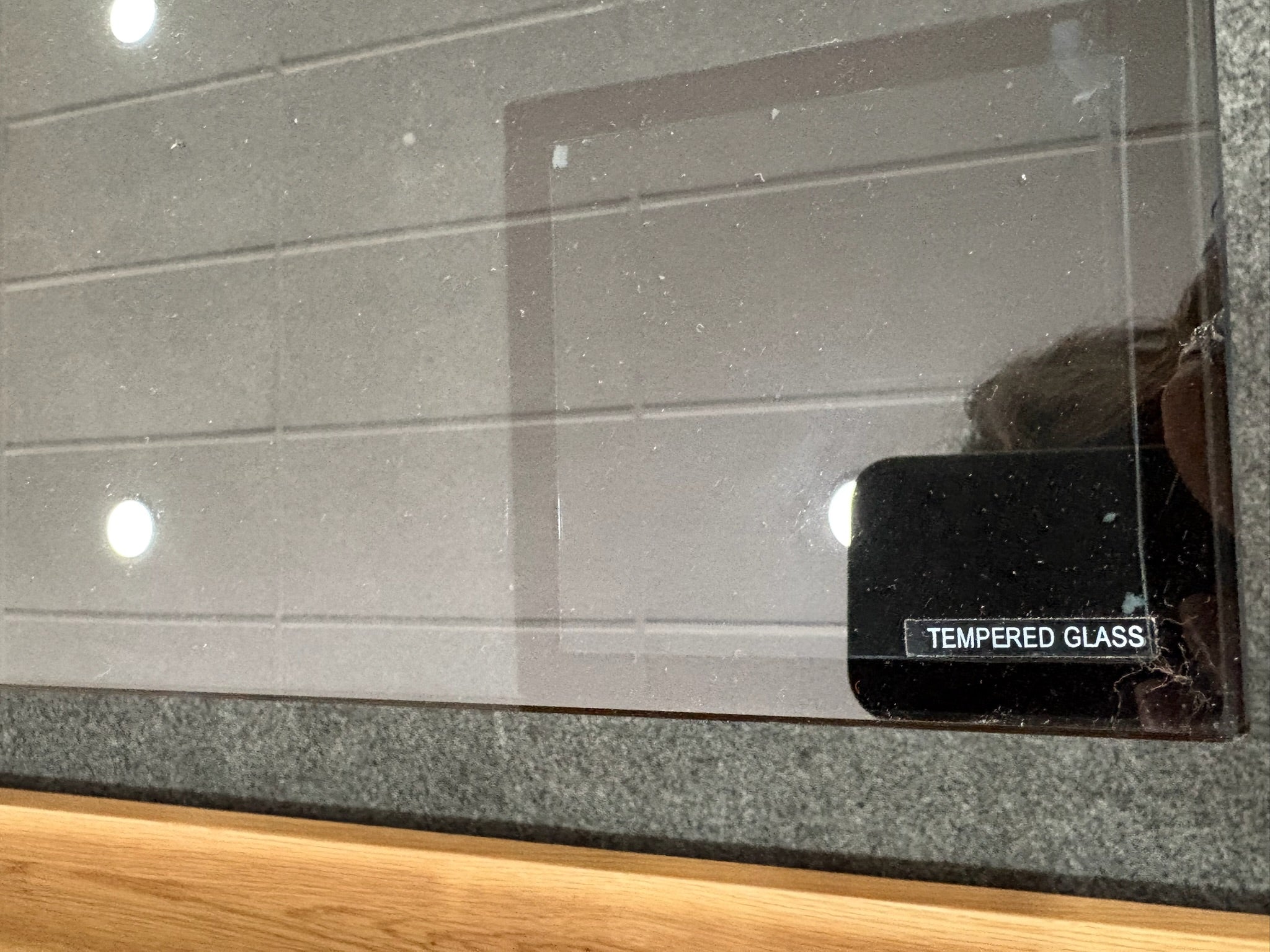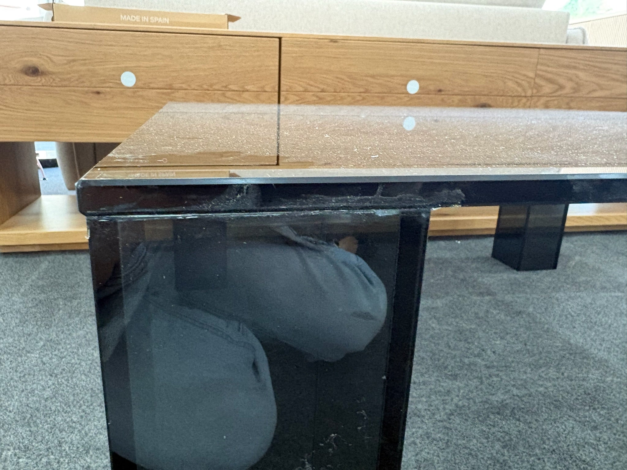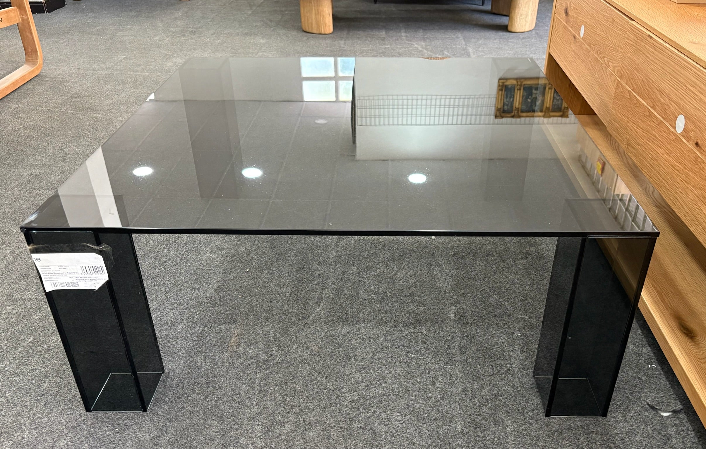 - Mesa auxiliar hecha de cristal templado gris oscuro.