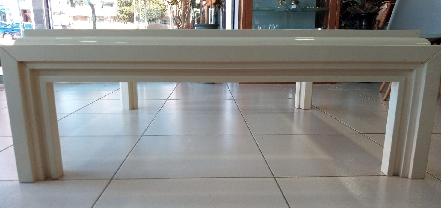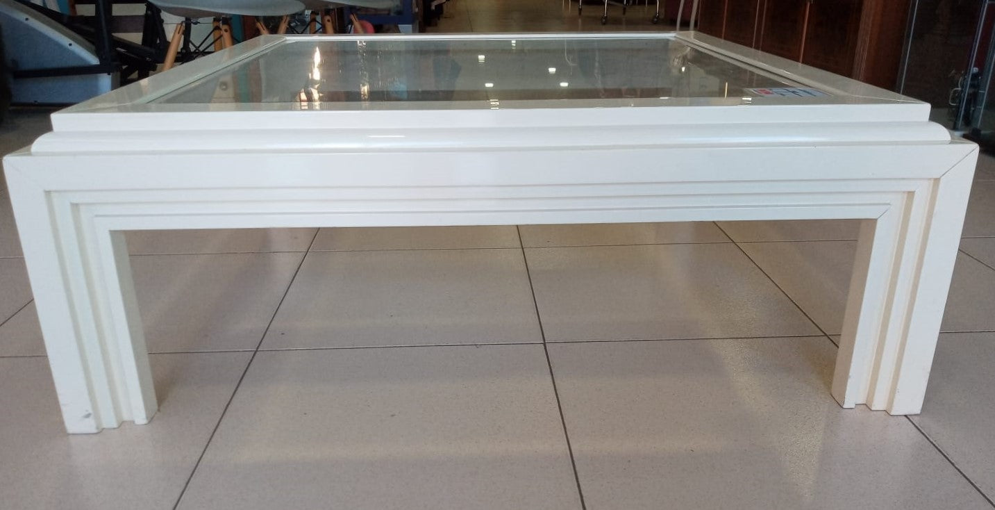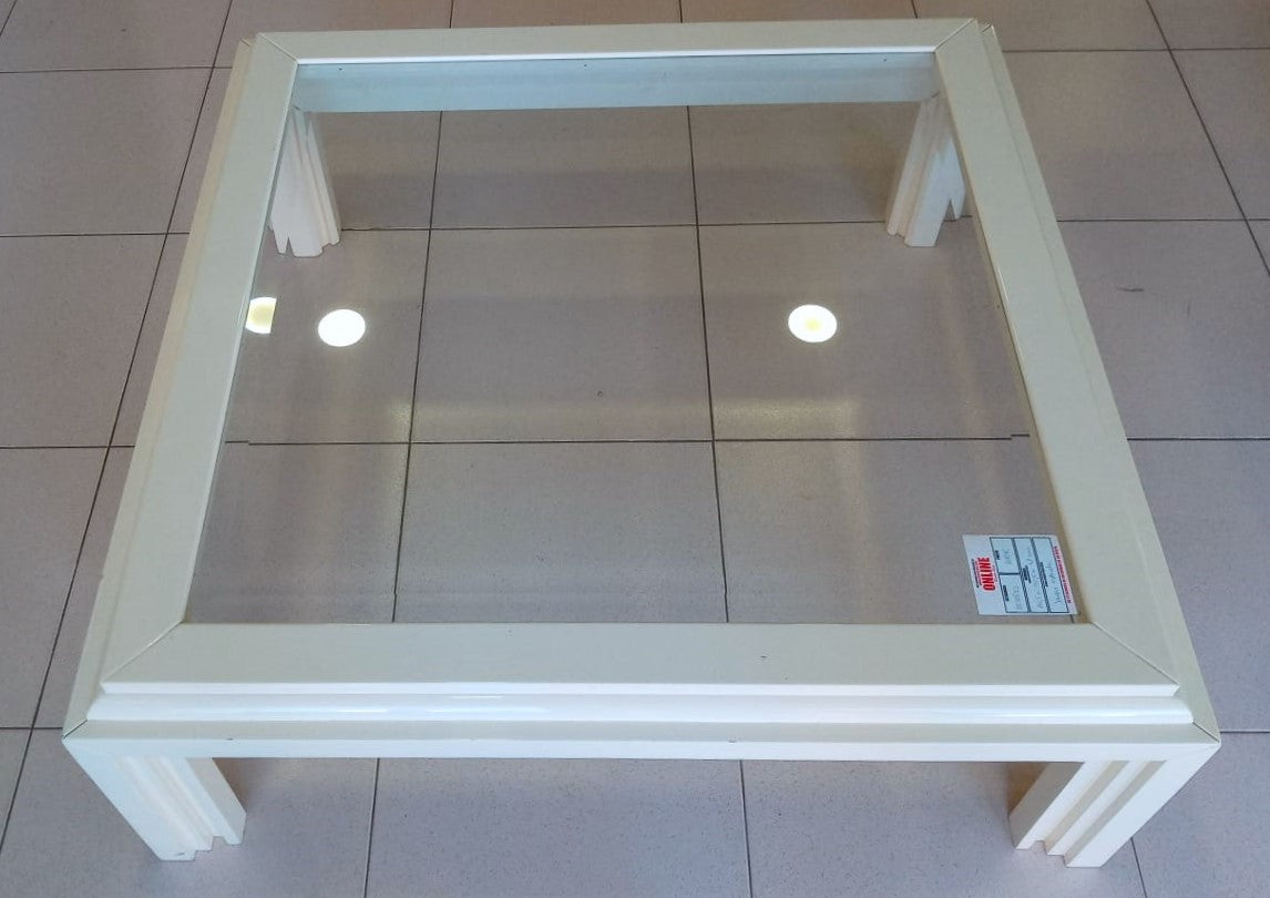 Descripción Mesa para centro de salón de estilo moderno y elegante. Encimera cuadrada y acristalada, bordes biselados y en relieve.