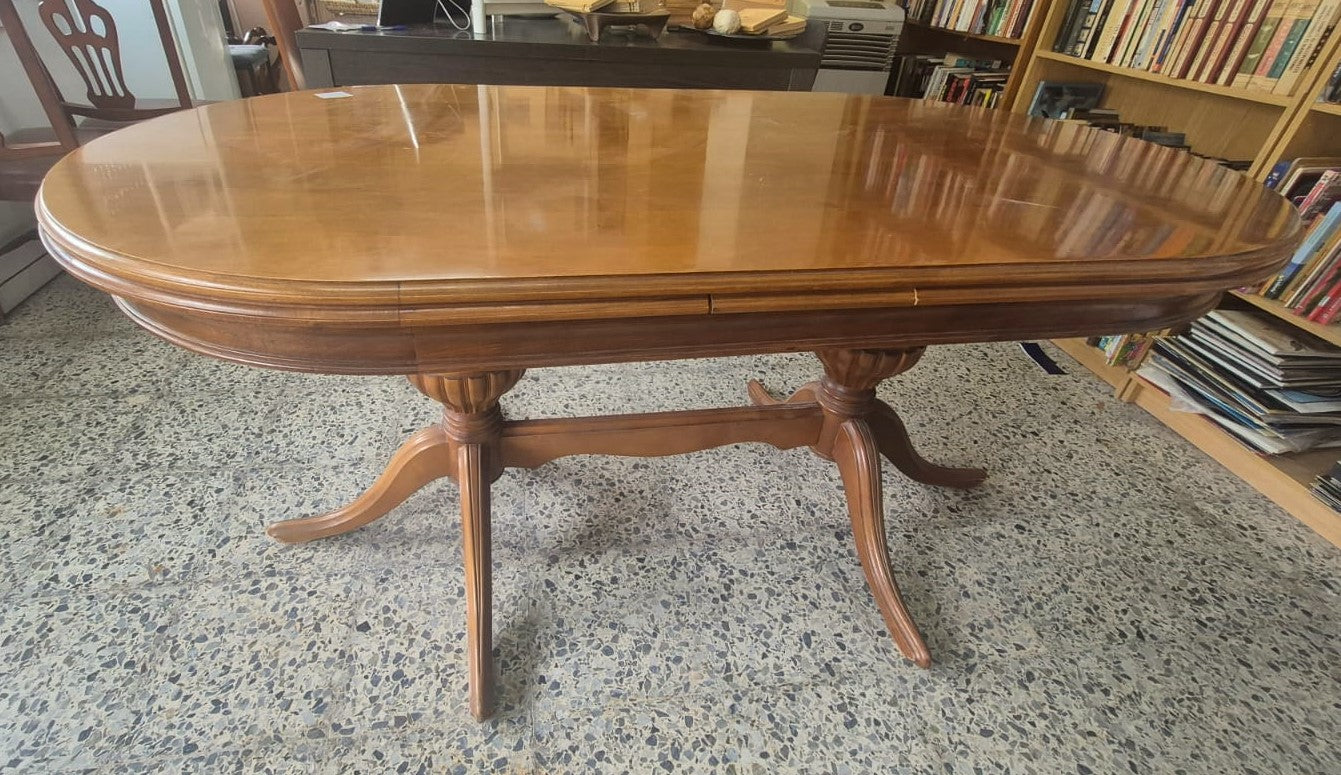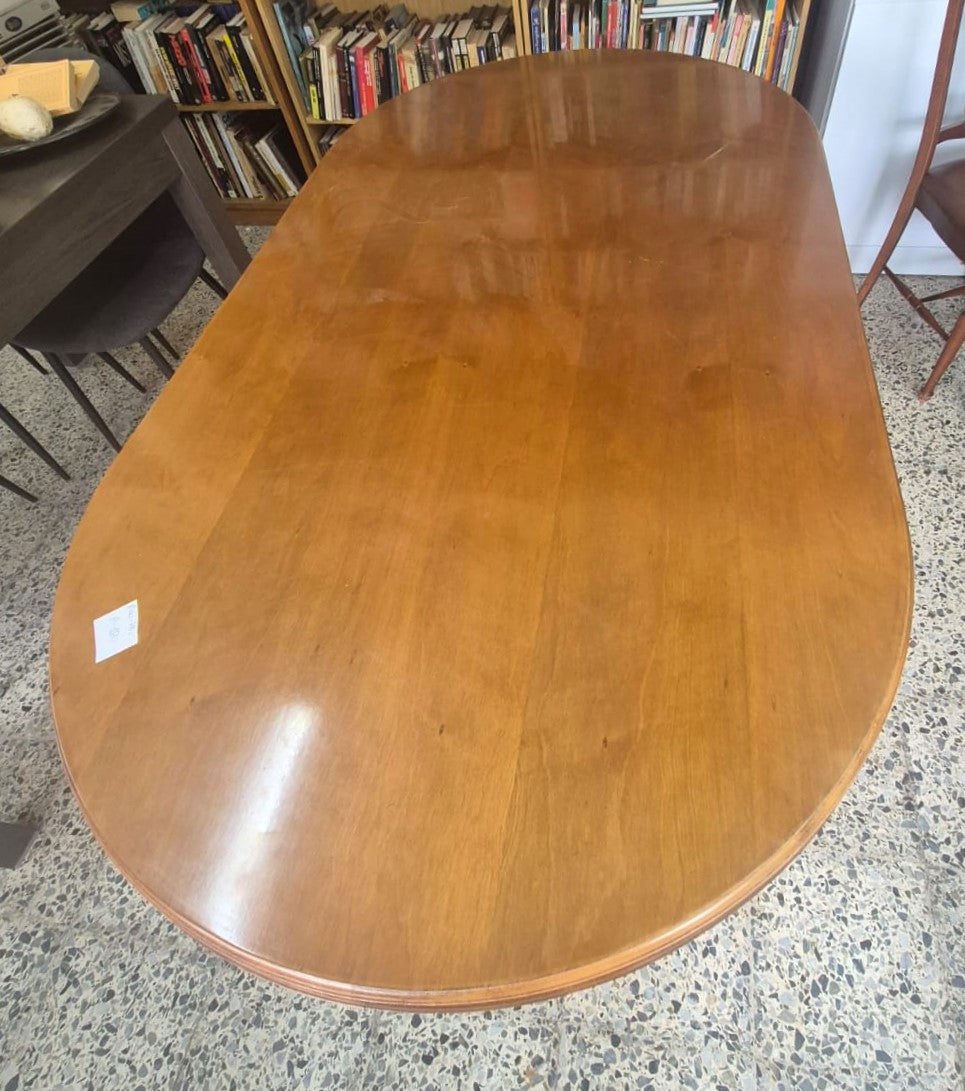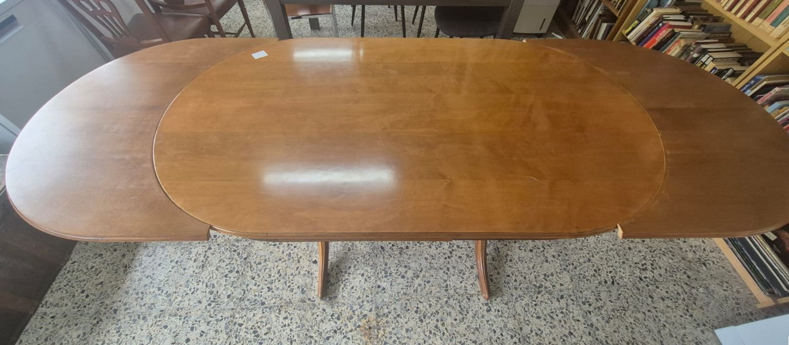 Descripción Mesa de madera maciza con esmaltado brillante. Capacidad para acoger de 6 a 8 personas. Dispone de un ala extensible independiente en cada extremo. Sistema de extensión fácil de usar, estirando del ala que necesites usar.