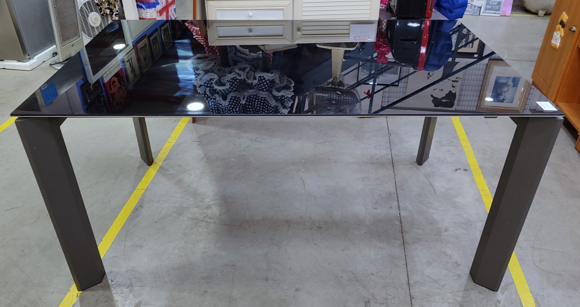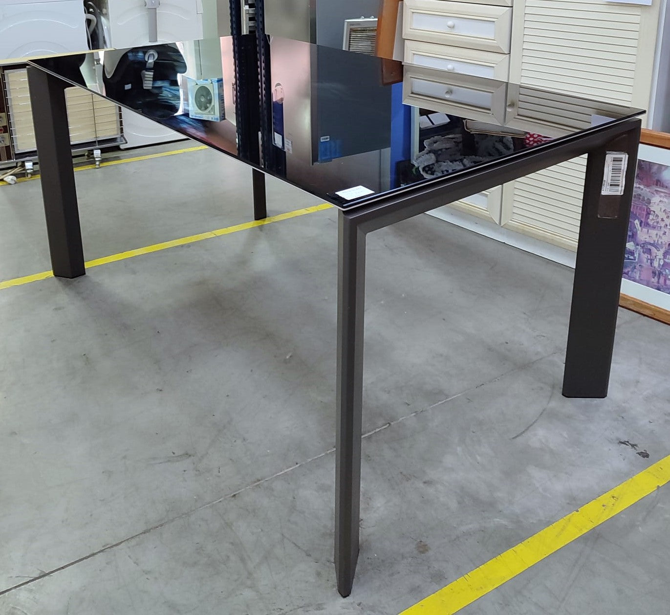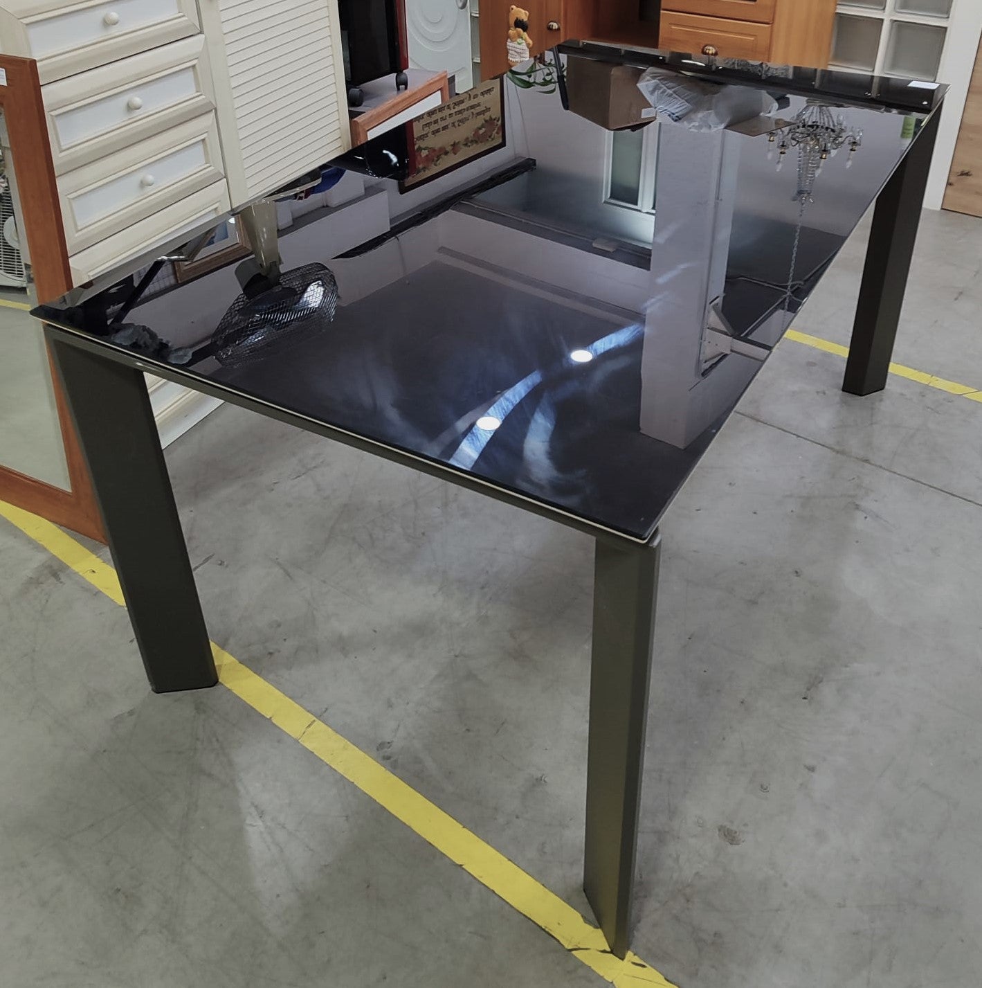 Descripción Mesa extensible de estilo moderno, capacidad para acoger de 4 a 8 comensales. Sobre de cristal templado color negro. Patas de acero. El extensible tiene un acabado lacado en poliuretano que se diferencia del resto del sobre a simple vista. Mecanismo de extensión mariposa. Estirando por uno de los extremos y colocando el anexo en su sitio.