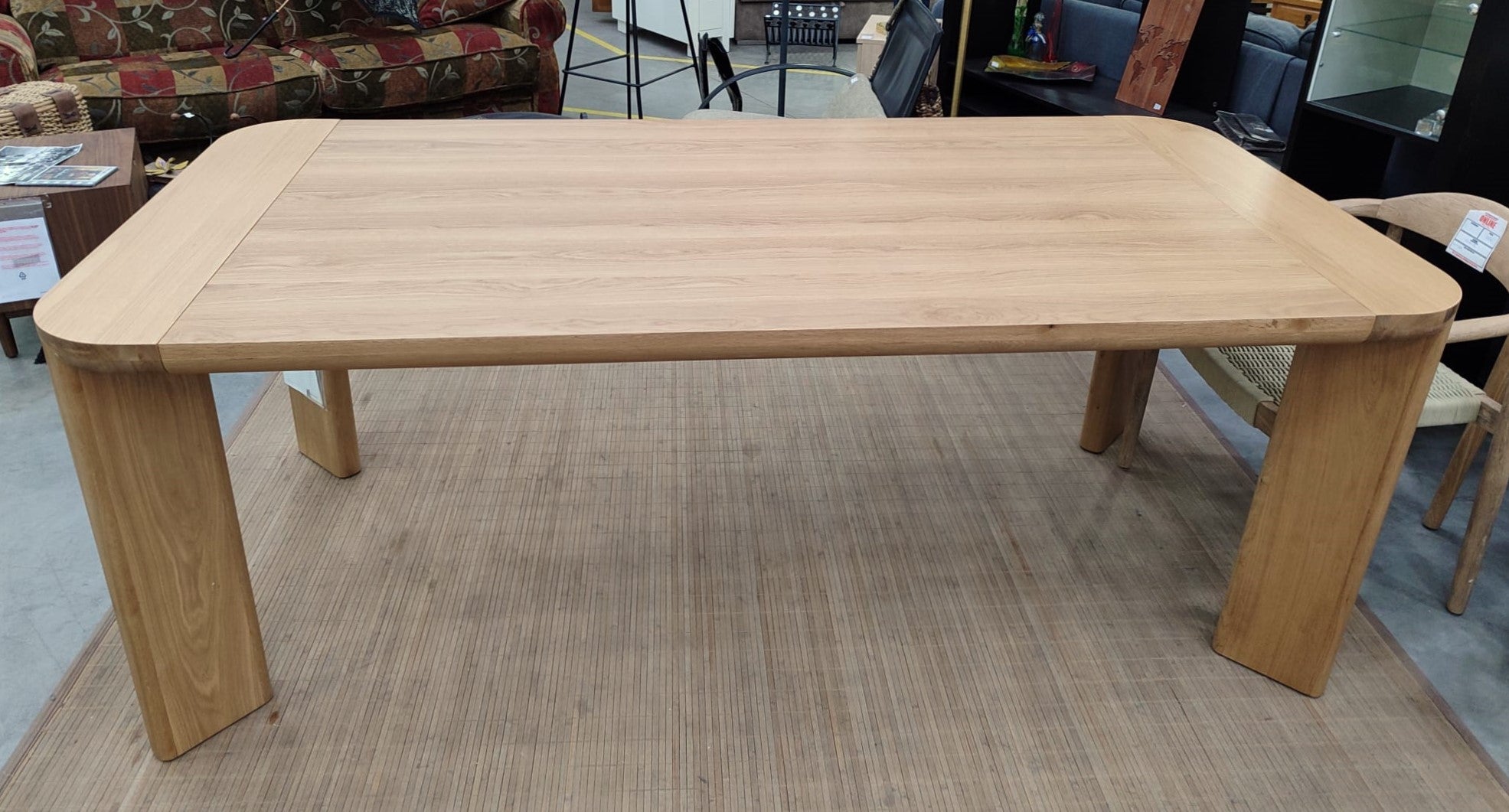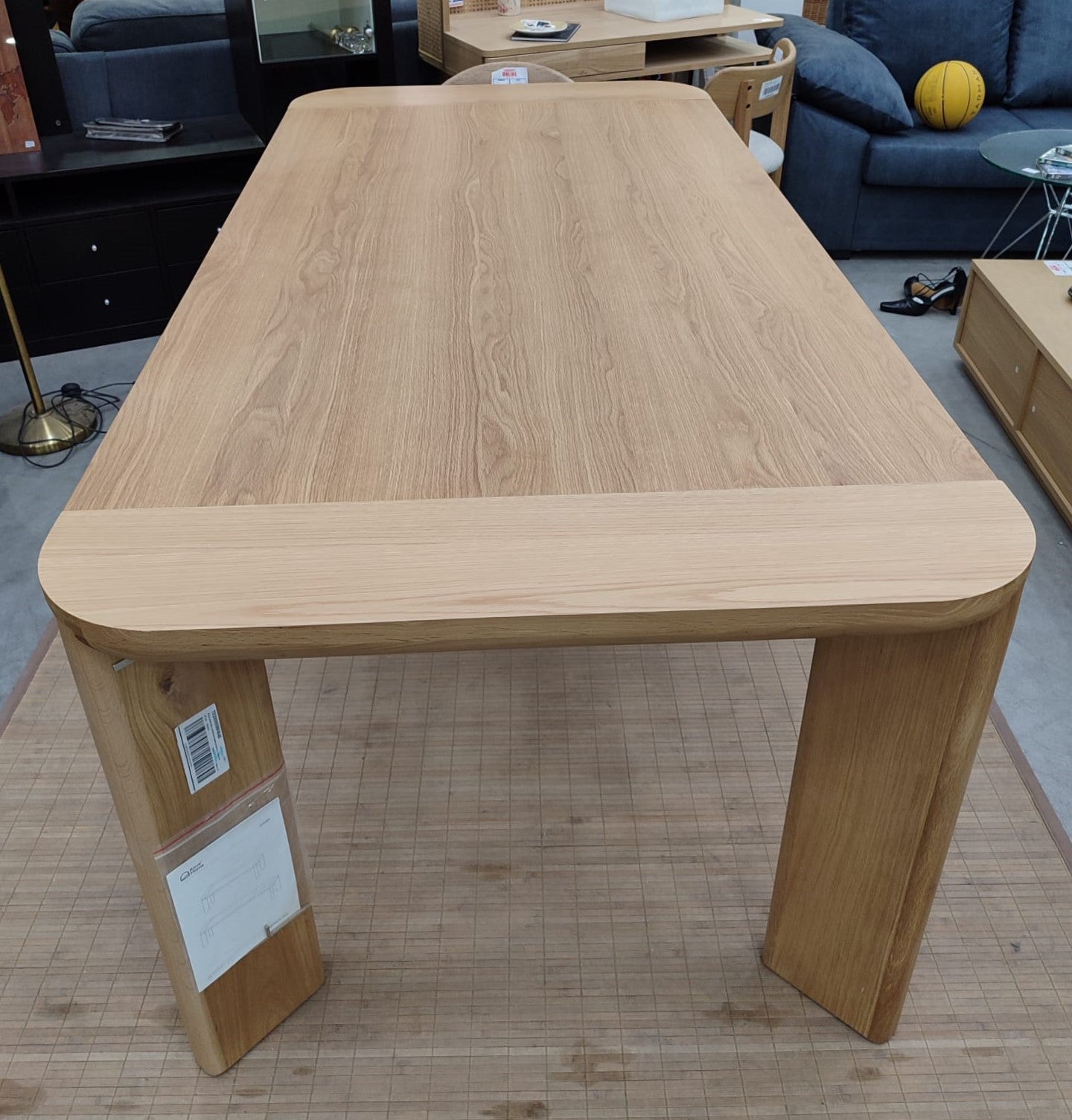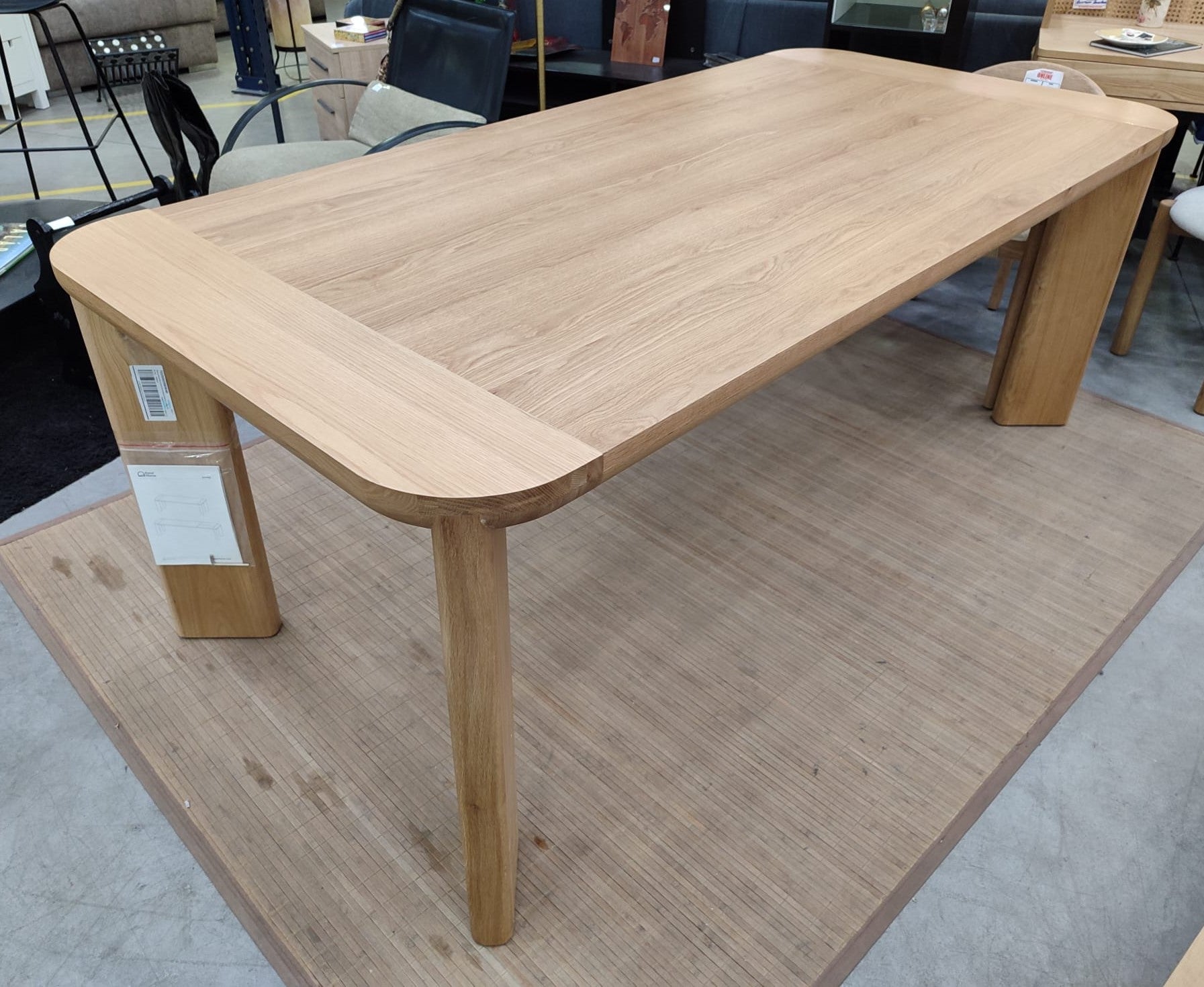 Descripción Mesa extensible con sobre chapado y patas de roble macizo con acabado natural. Capacidad para acoger de 8 a 12 comensales. Mecanismo extensible fácil de usar, estirando por uno de los costados y encajando en su sitio la pieza adjunta. Extensión de 80 cm oculta en el interior de la mesa.