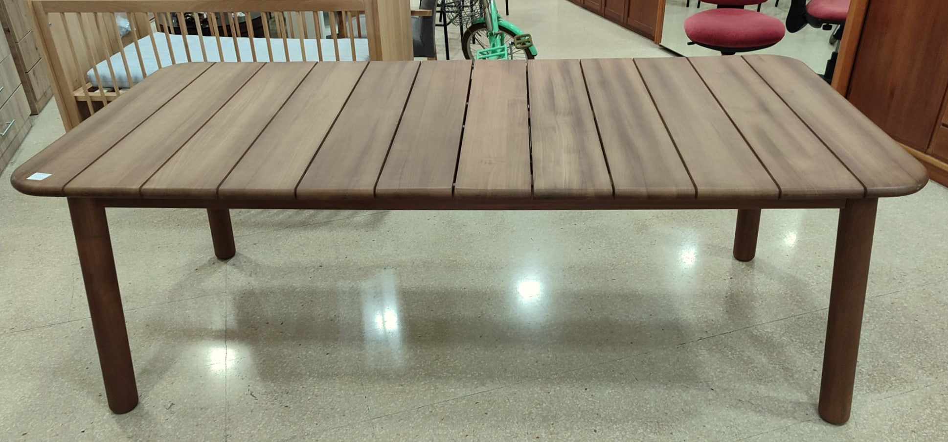 Forma del producto MESA EXTENSIBLE "TURQUETA" 219x100x79 cm €1.300,00IVA incluido SKU: R-071-E Recogida gratuita en nuestra(s) tienda(s) Contáctanos por WhatsApp Estado: NuevoMedidas: Largo 219/293 cm, Ancho 100 cm, Alto 79 cm.Color: MarrónDefecto: no tiene