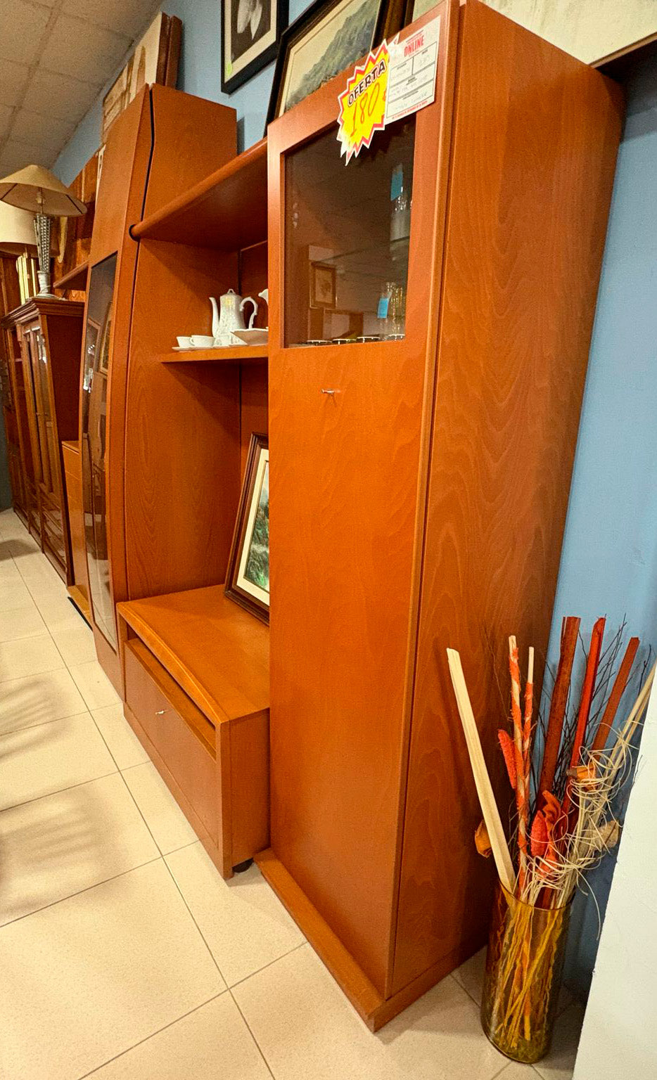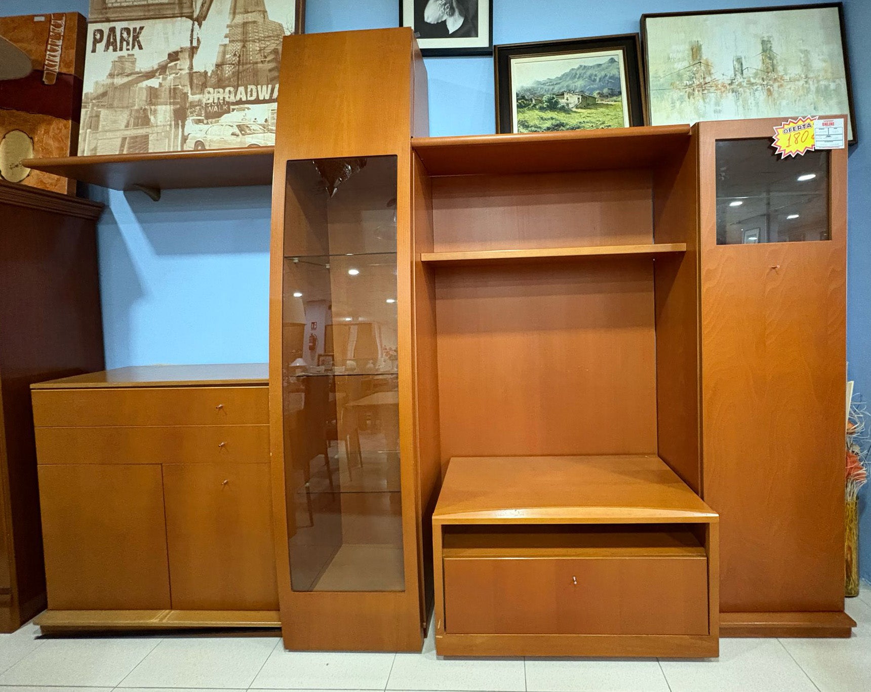 - Mueble TV con cajones y compartimentos para diferentes dispositivos.