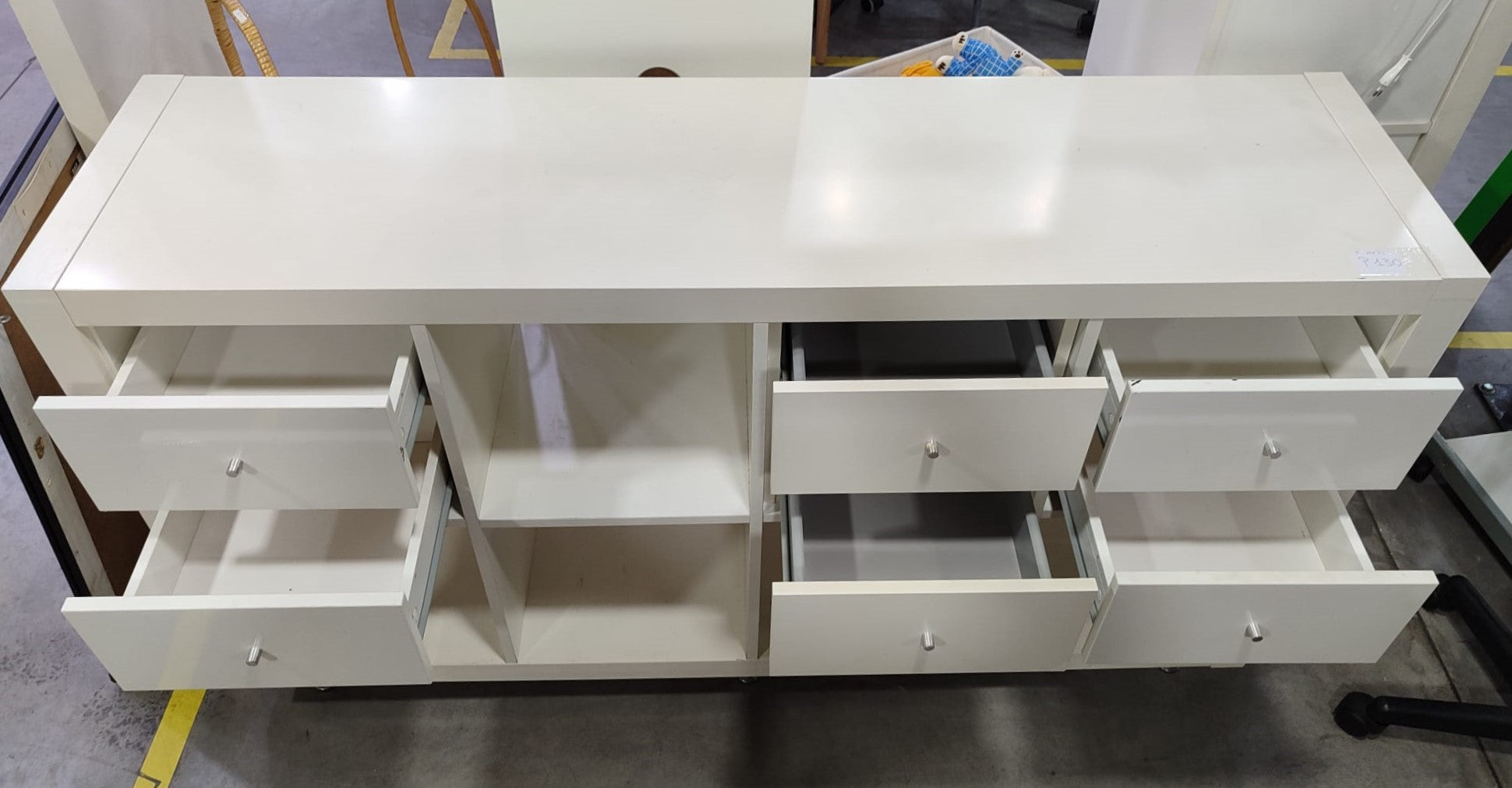 Forma del producto MUEBLE TV "KALLAX" 150x40x87 cm €130,00IVA incluido SKU: R-F0002337-E Recogida gratuita en nuestra(s) tienda(s) Contáctanos por WhatsApp Estado: En buen estadoMedidas: Largo 150 cm, Profundidad 40 cm, Alto 87 cm. Color: BlancoDefecto: sí tiene