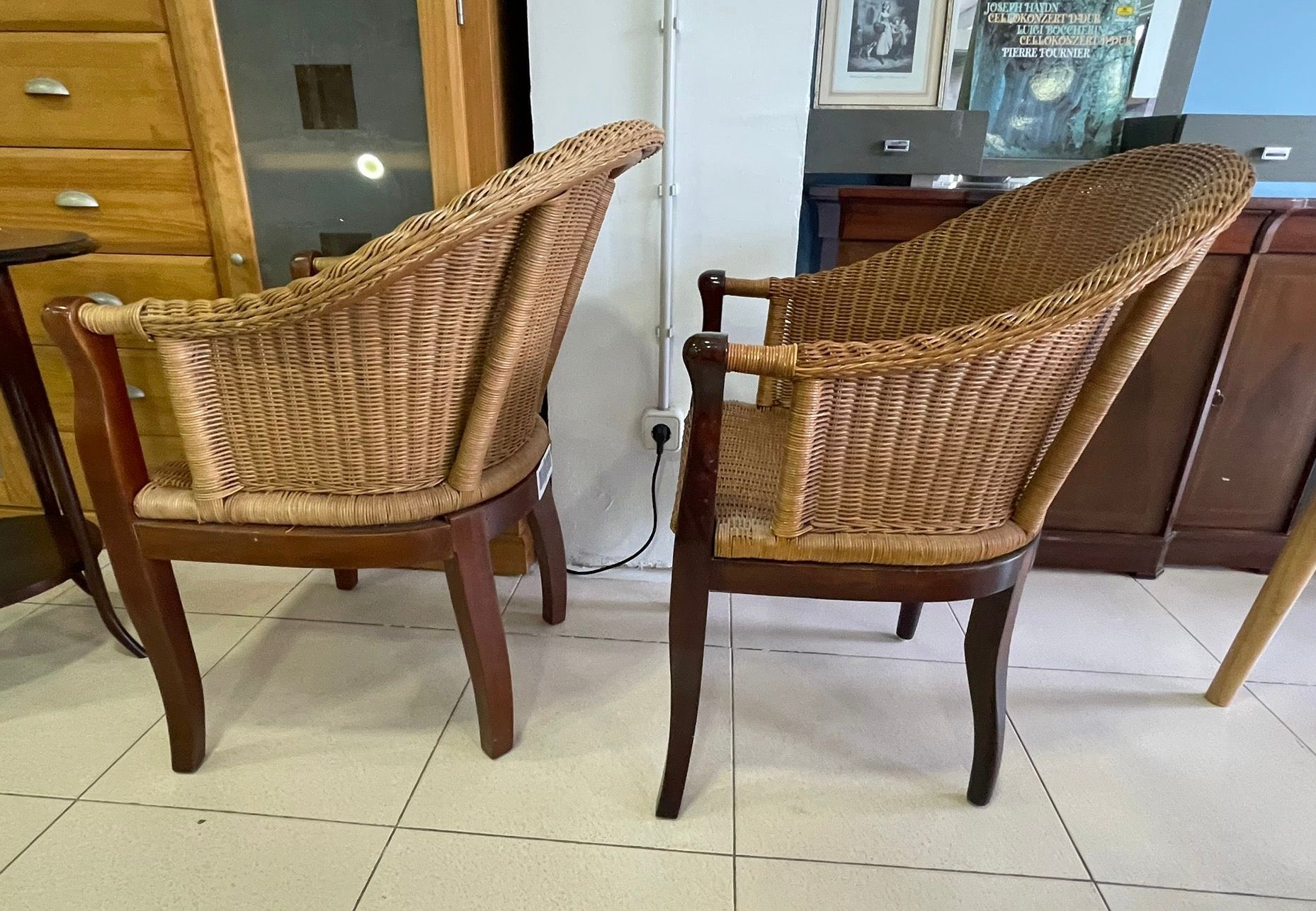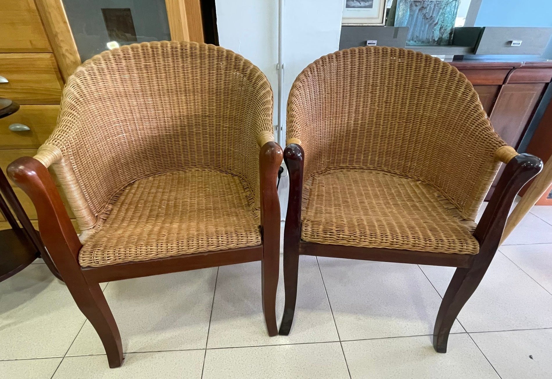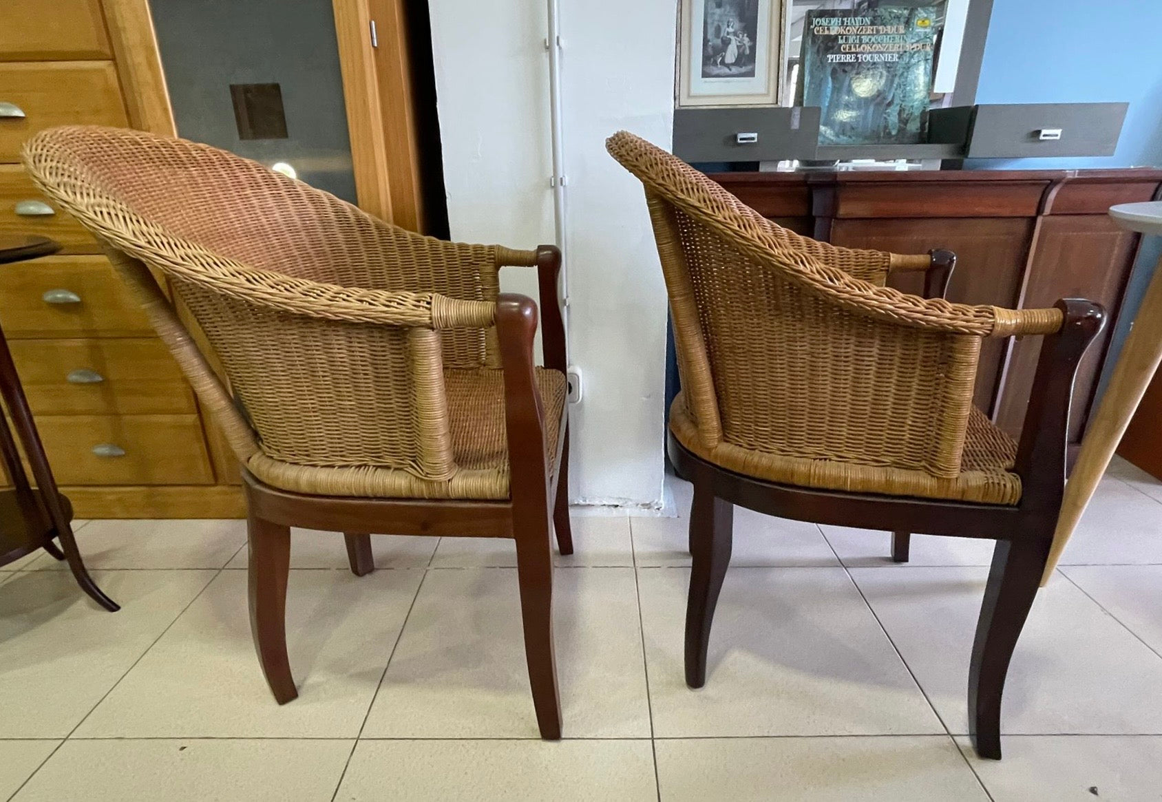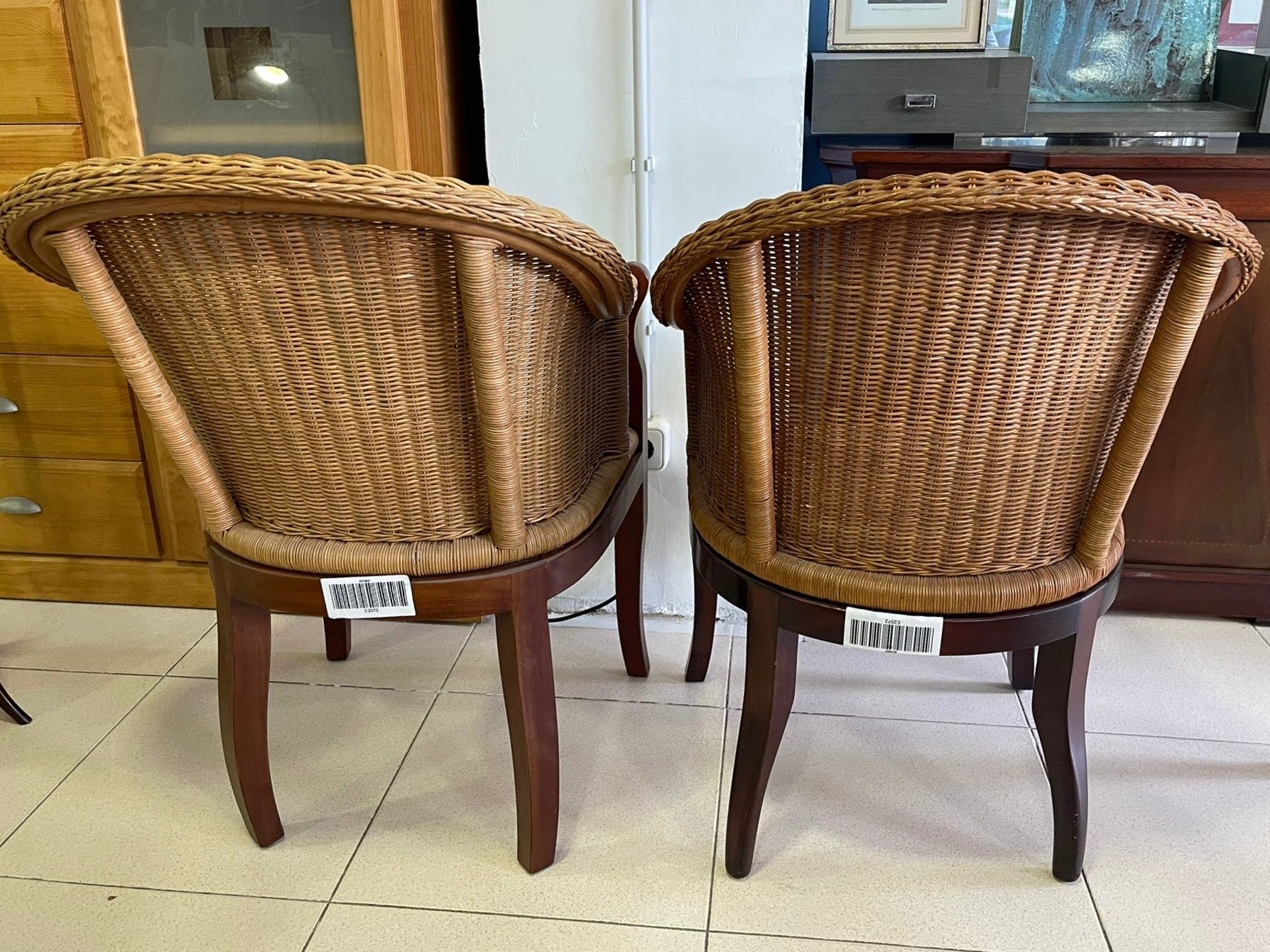 Descripción Butacas perfectas para un interior de estilo bohemio, rústico o vintage. Estructura de madera maciza. Asiento y respaldo de ratán tejido a mano. Diseño curvo y envolvente. Se pueden comprar por separado, cada una, 30€.