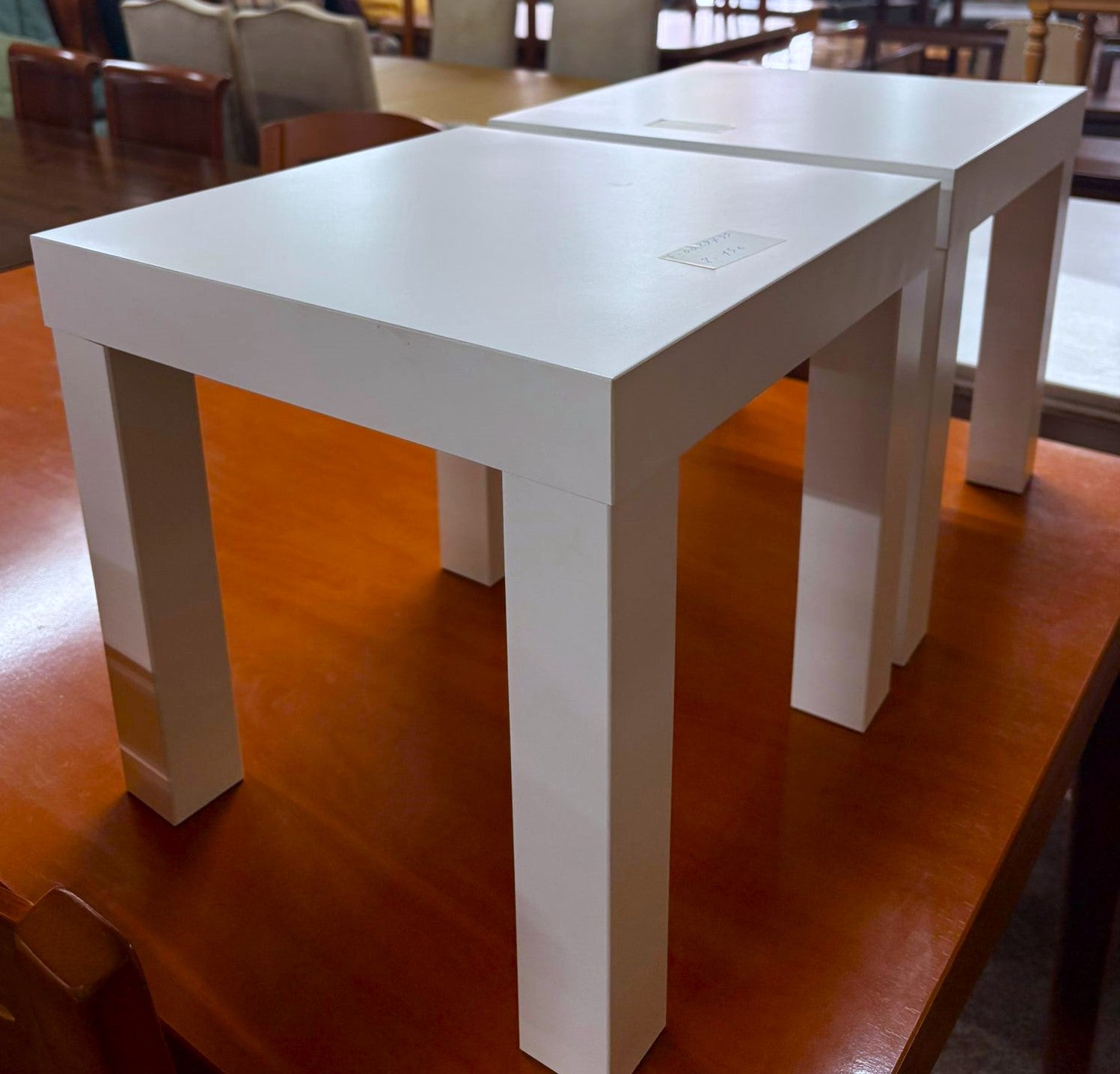 Forma del producto PAR DE MESITAS "LACK" 35x35x35 cm €25,00IVA incluido Recogida gratuita en nuestra(s) tienda(s) Contáctanos por WhatsApp Estado: En buen estadoMedidas: Largo 35 cm, Profundidad 35 cm, Alto 35 cm.Color: BlancoDefecto: no tienen