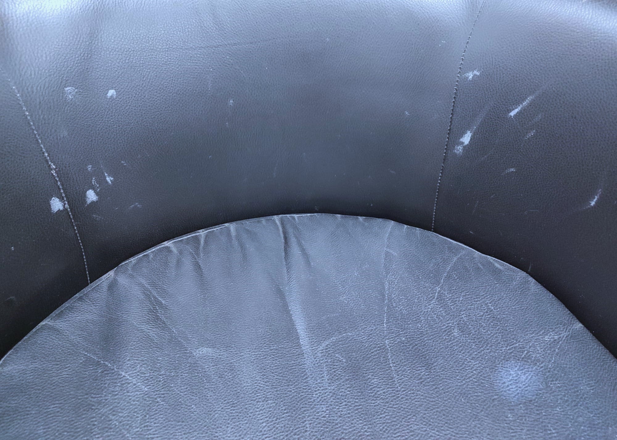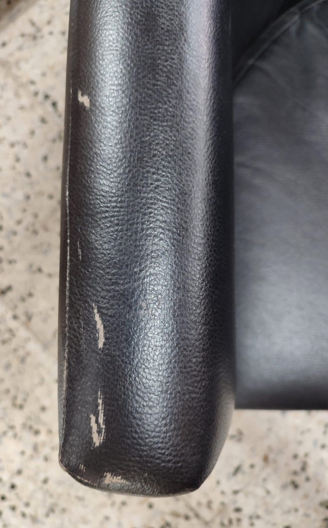 Descripción Estructura de madera y tableros de partículas. Respaldo envolvente, acolchado de poliuretano y guata de poliéster. Cojín de asiento relleno de espuma de poliuretano y guata de poliéster. Patas de haya. Tapizado de cuero sintético. Se pueden comprar por separado. 70€ cada una. Defecto: Ambos presentan rascadas en el tapizado, ver fotos.