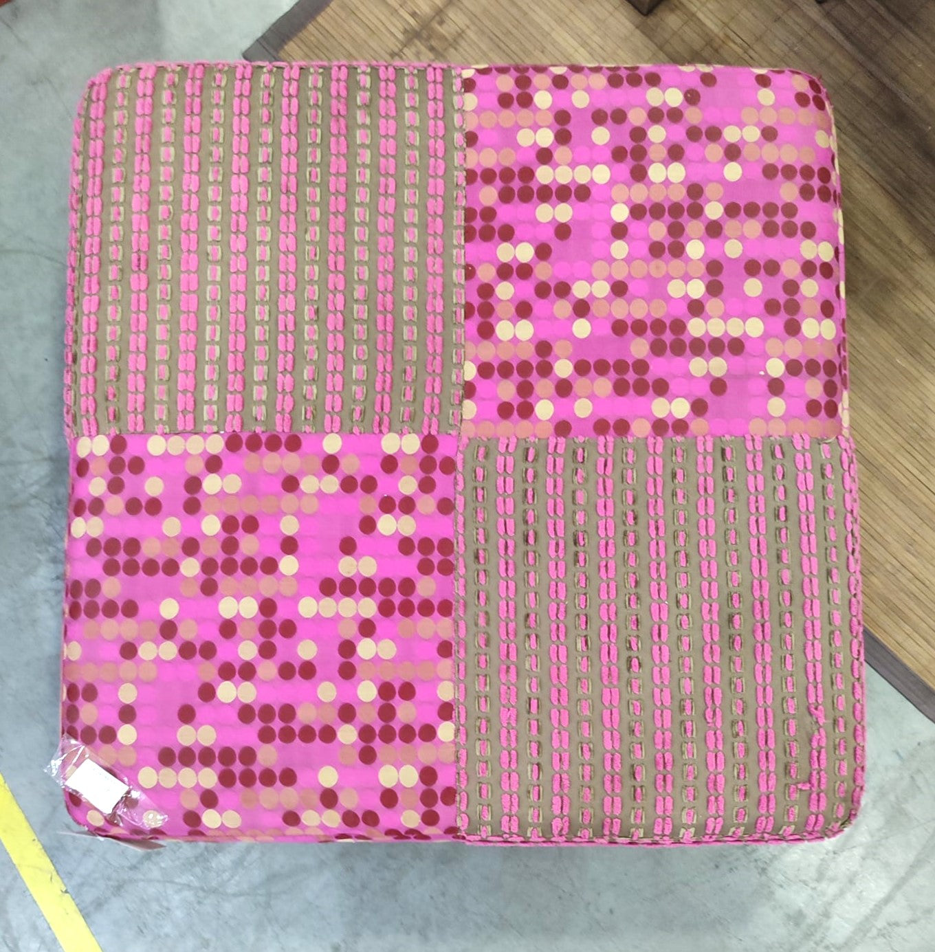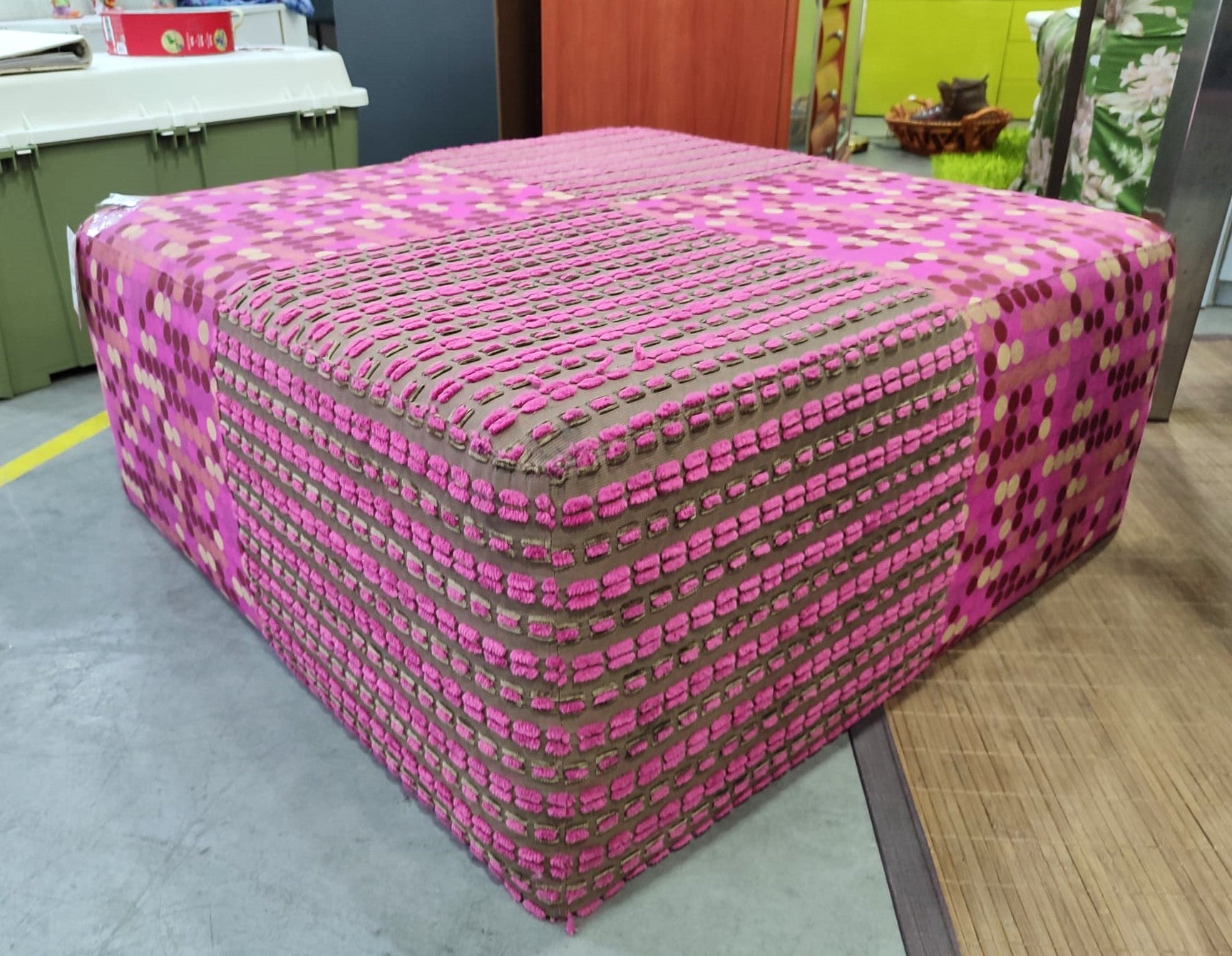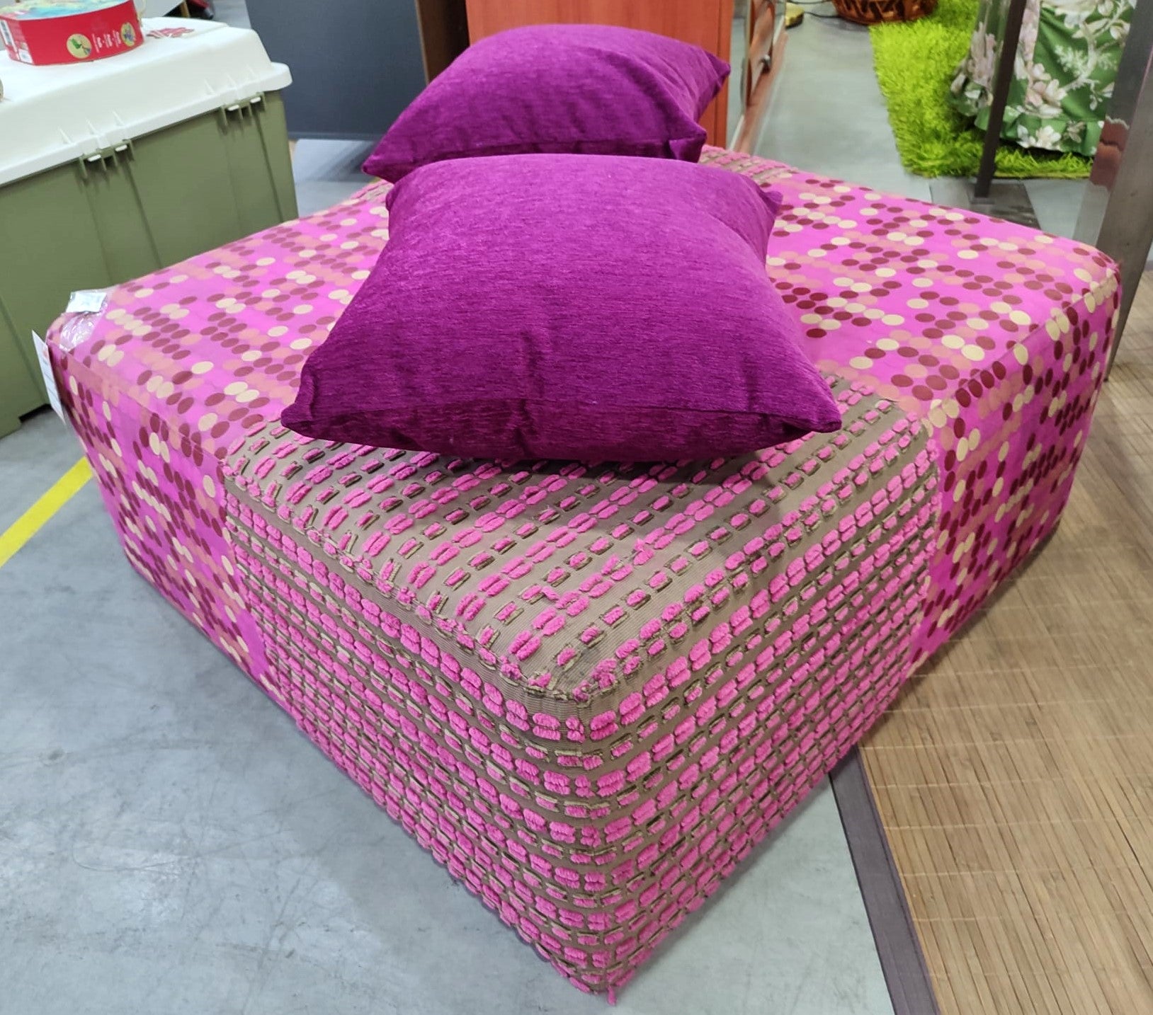 Forma del producto PUFF 92x92x40 cm €80,00IVA incluido SKU: R-E0019090-E Recogida gratuita en nuestra(s) tienda(s) Contáctanos por WhatsApp Estado: En buen estadoMedidas: Largo 92 cm, Ancho 92 cm, Alto 40 cm.Color: Rosa y MarrónDefecto: sí tiene