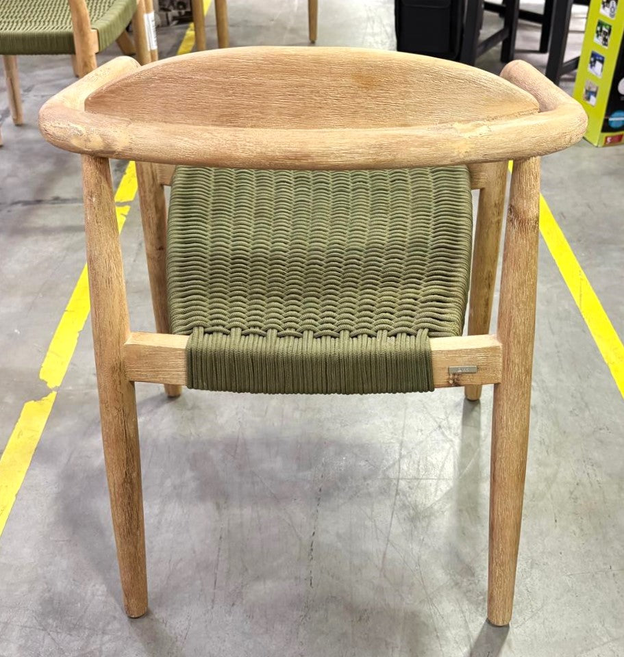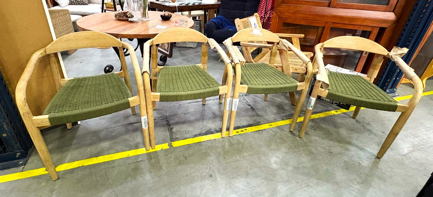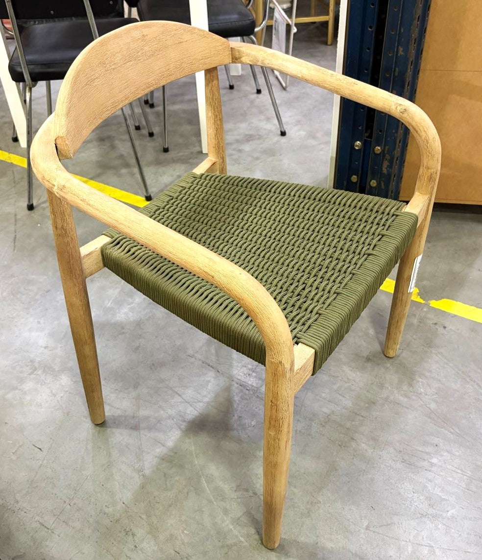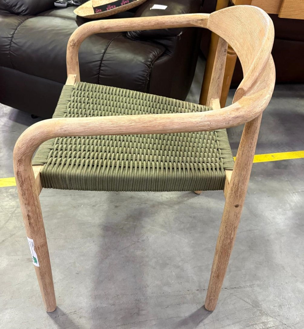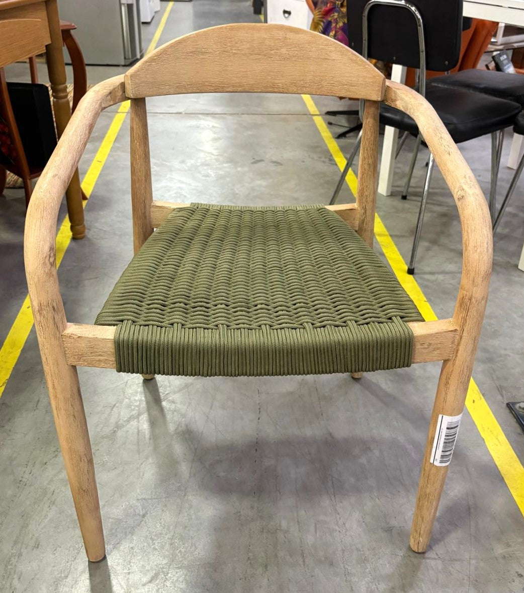 - Sillas apilables con reposabrazos, hechas con materiales de origen natural y procesos artesanales.