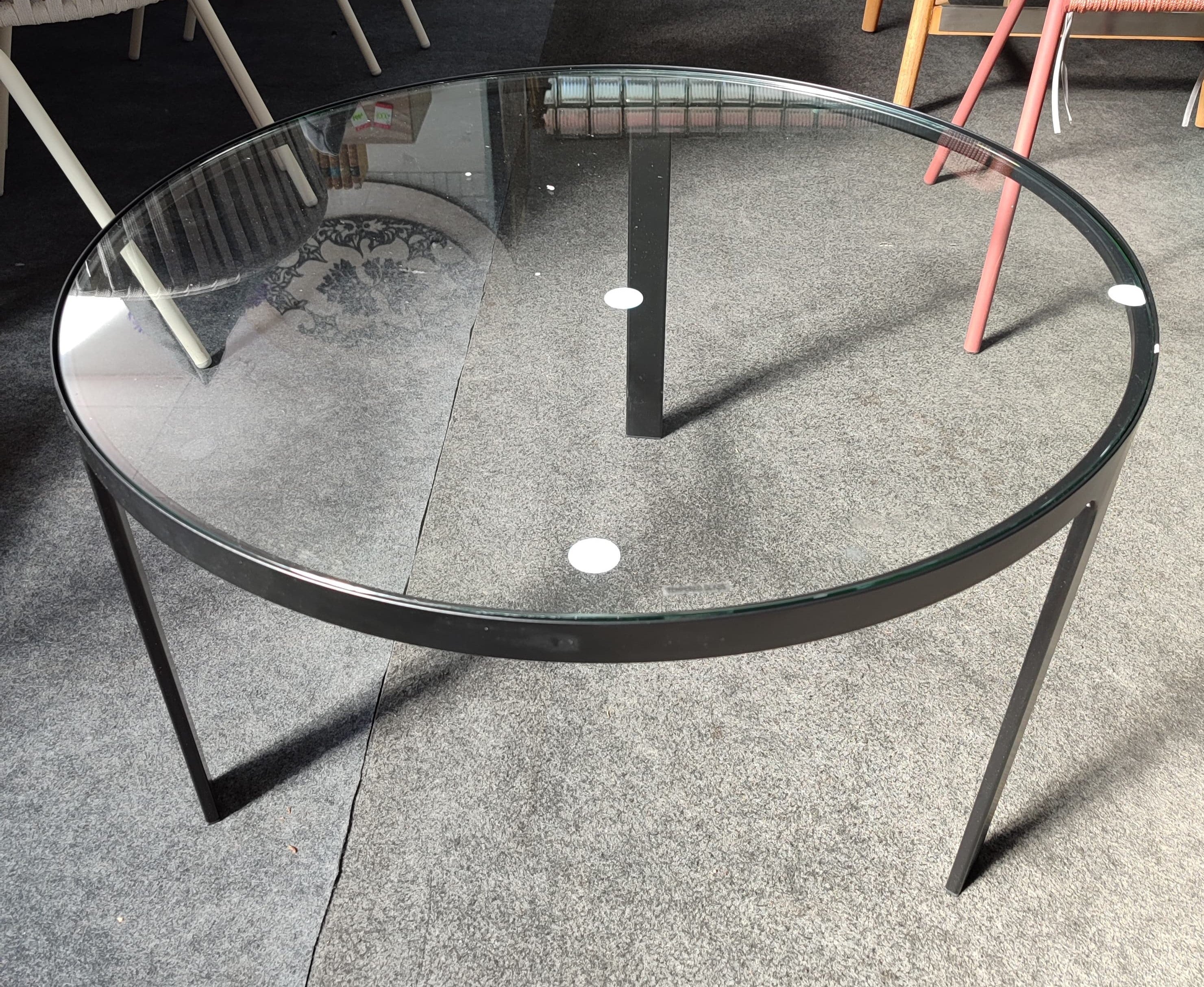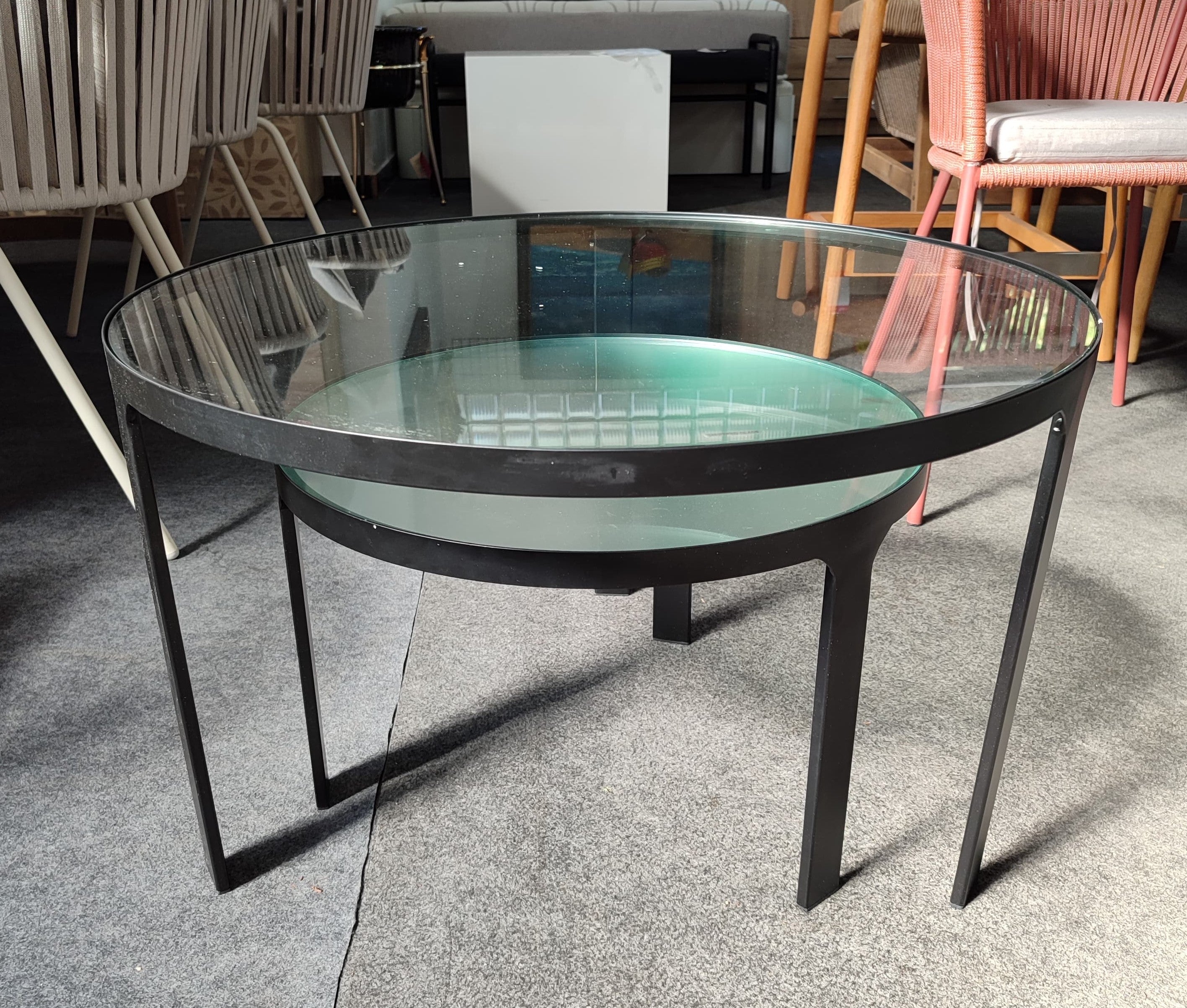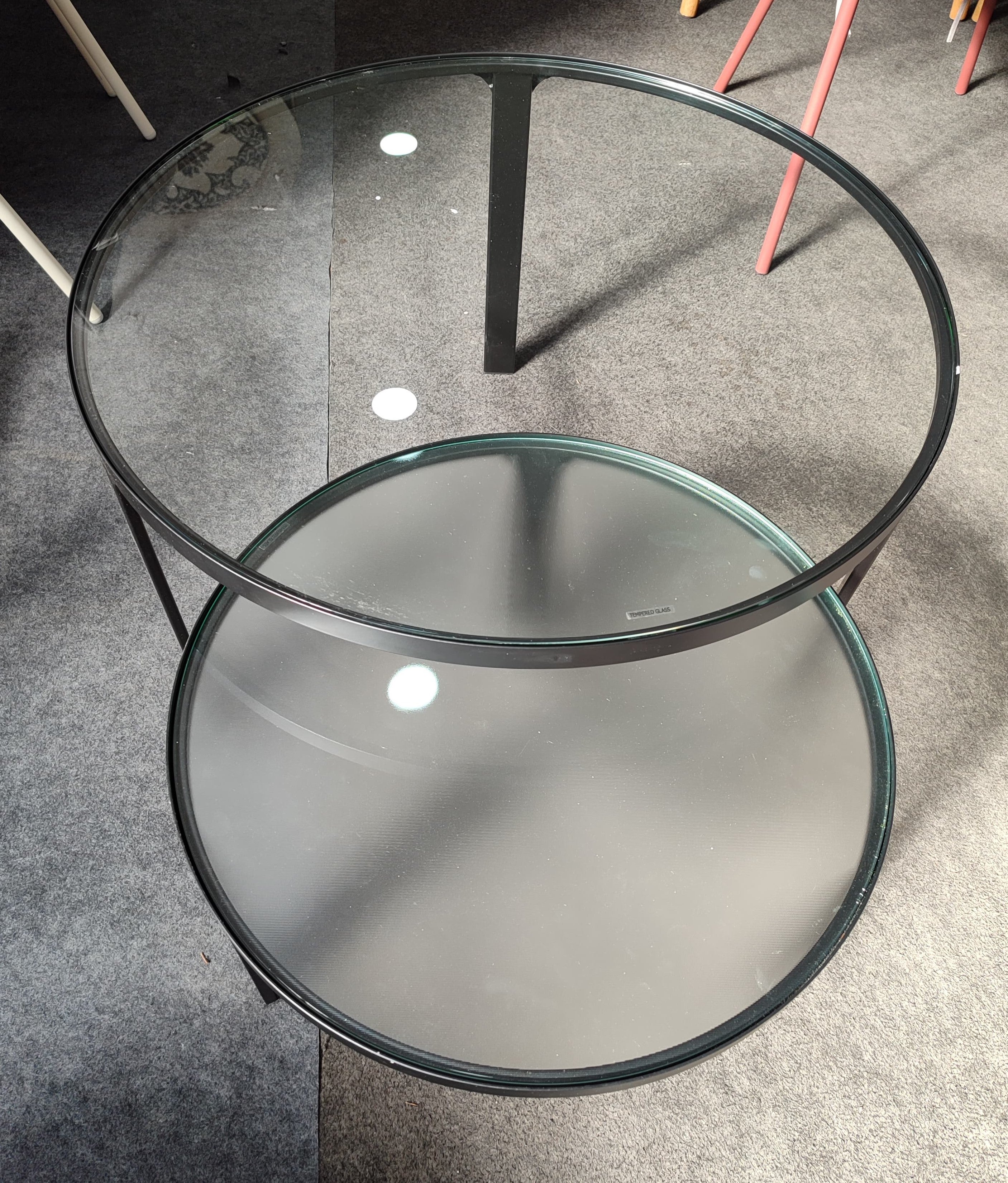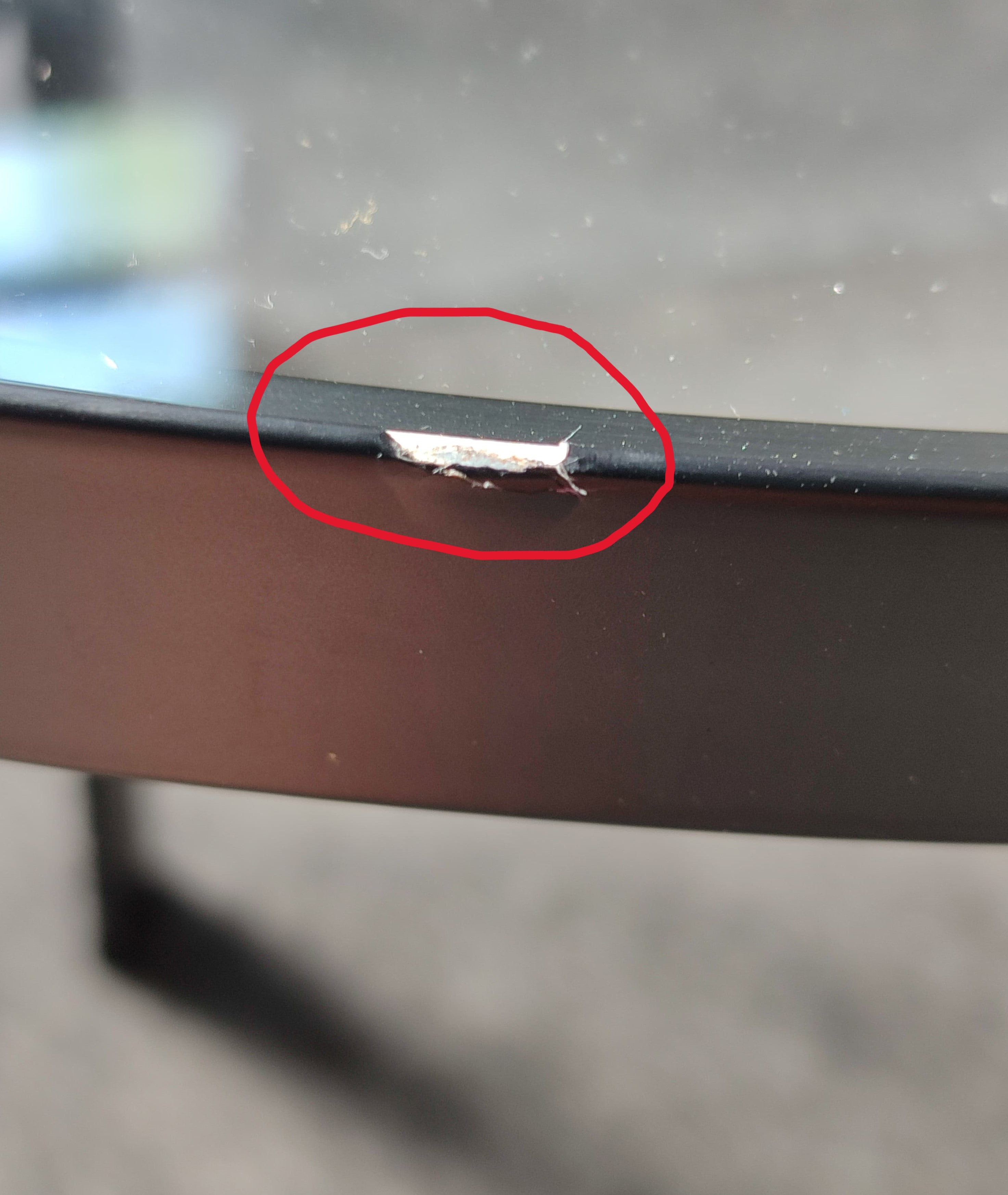 Defecto: la estructura de la mesita grande tiene tara en la capa de esmalte que cubre al acero. ver foto.