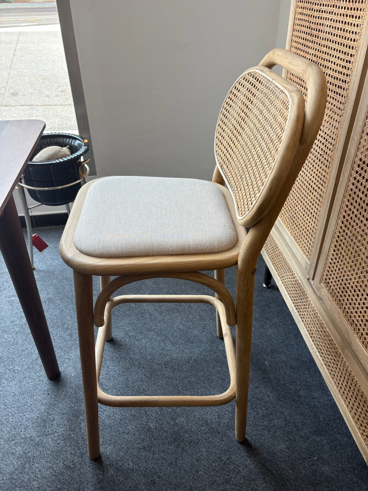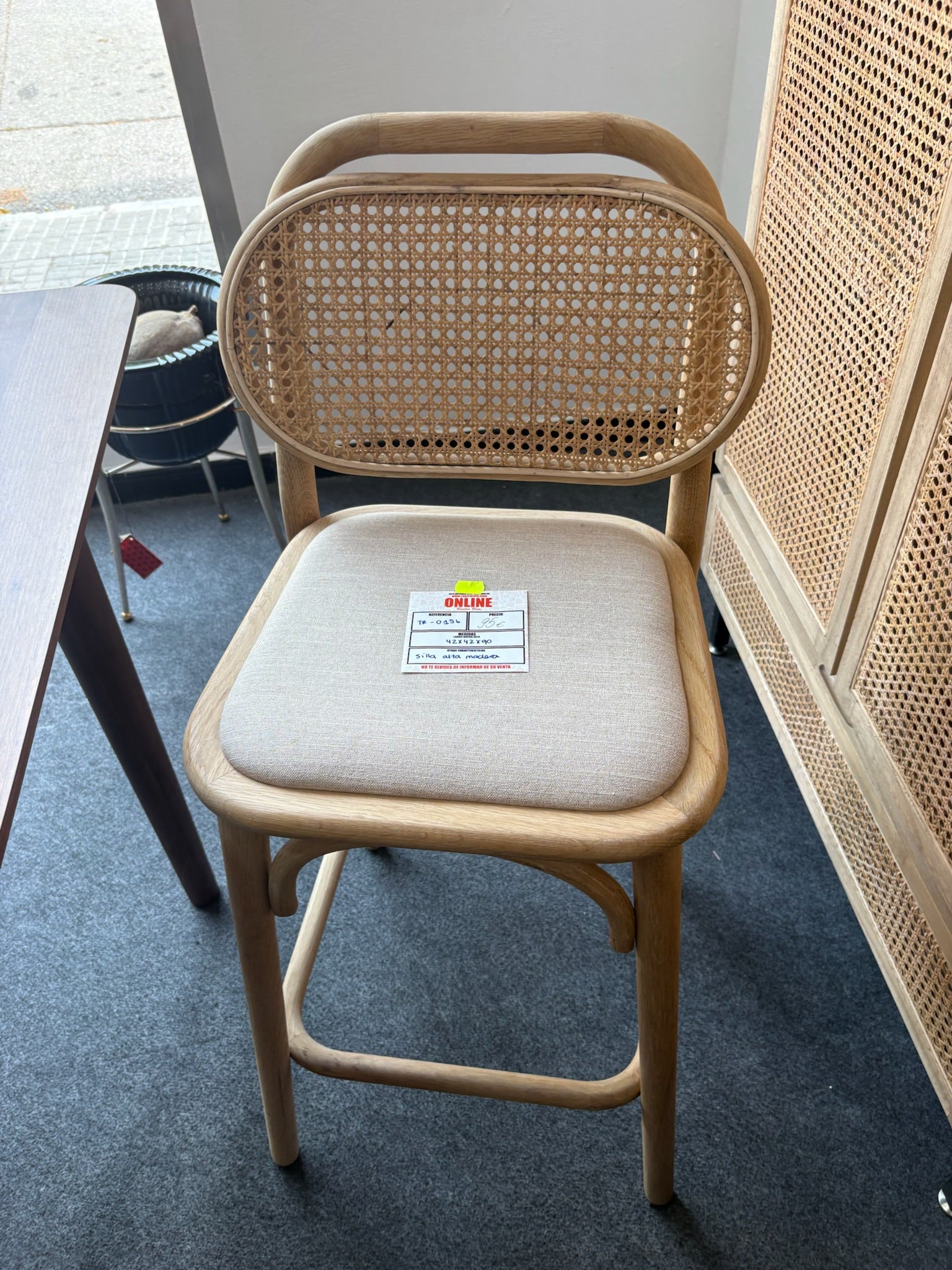 -Silla alta de madera con respaldo
