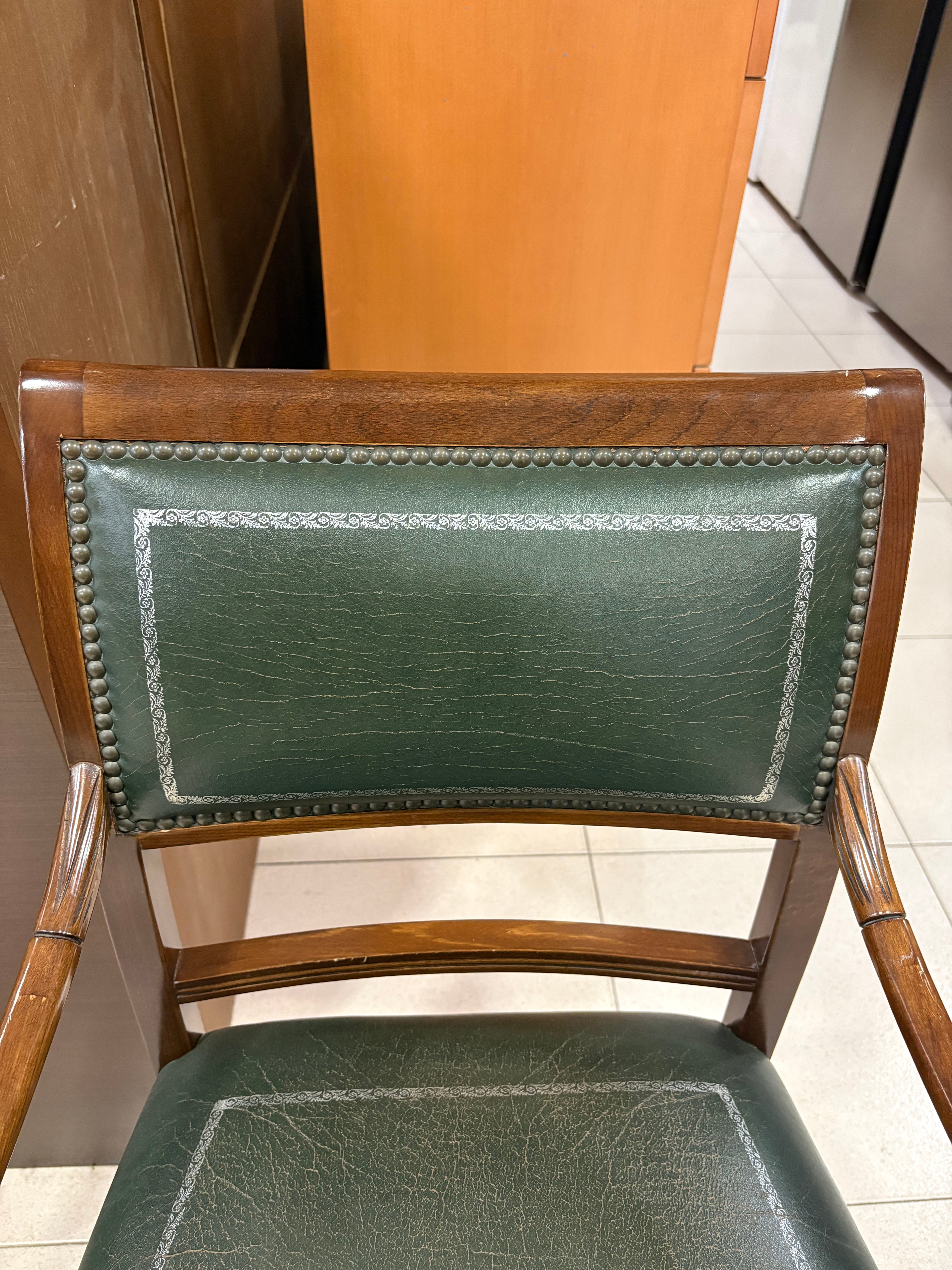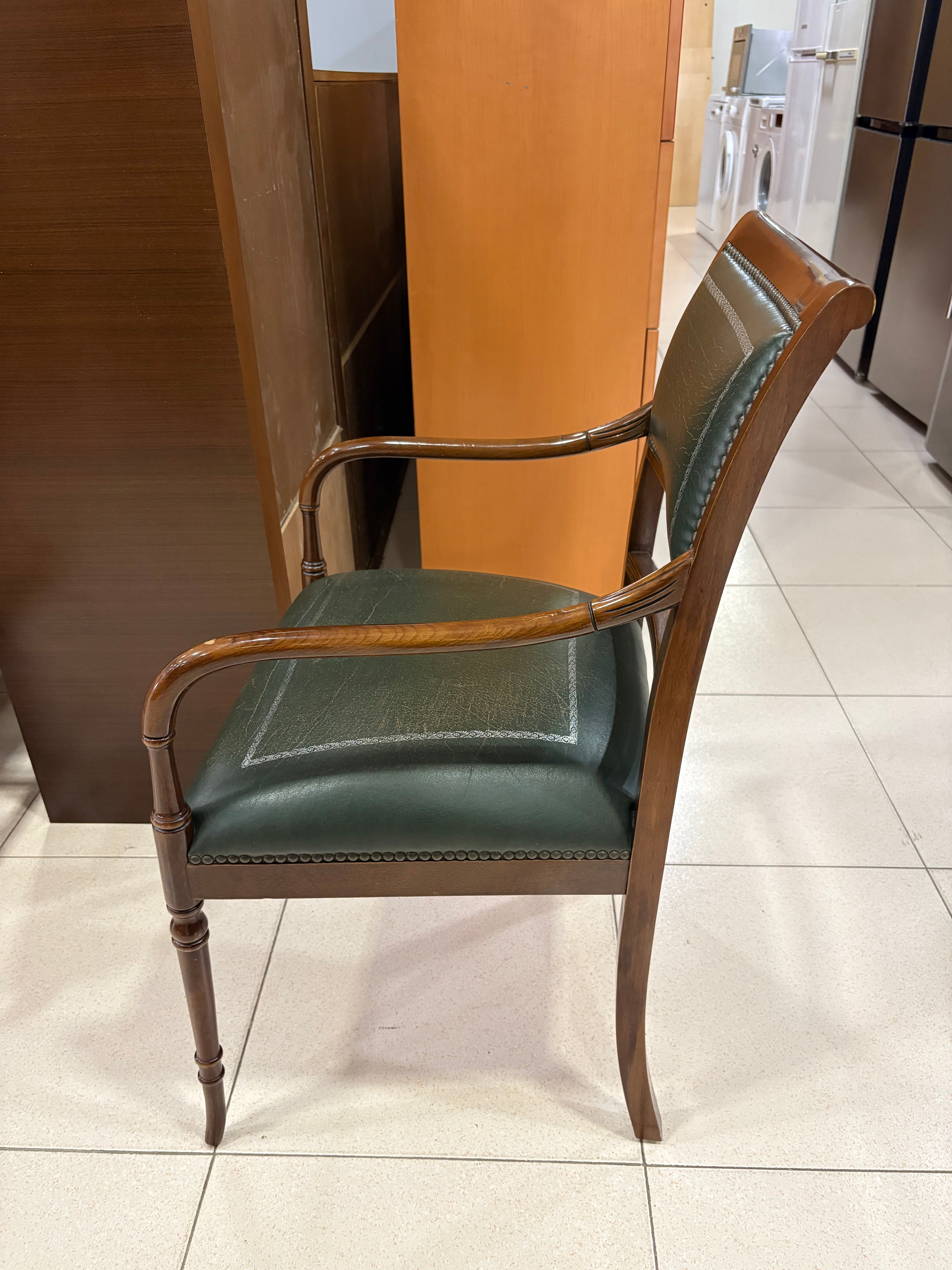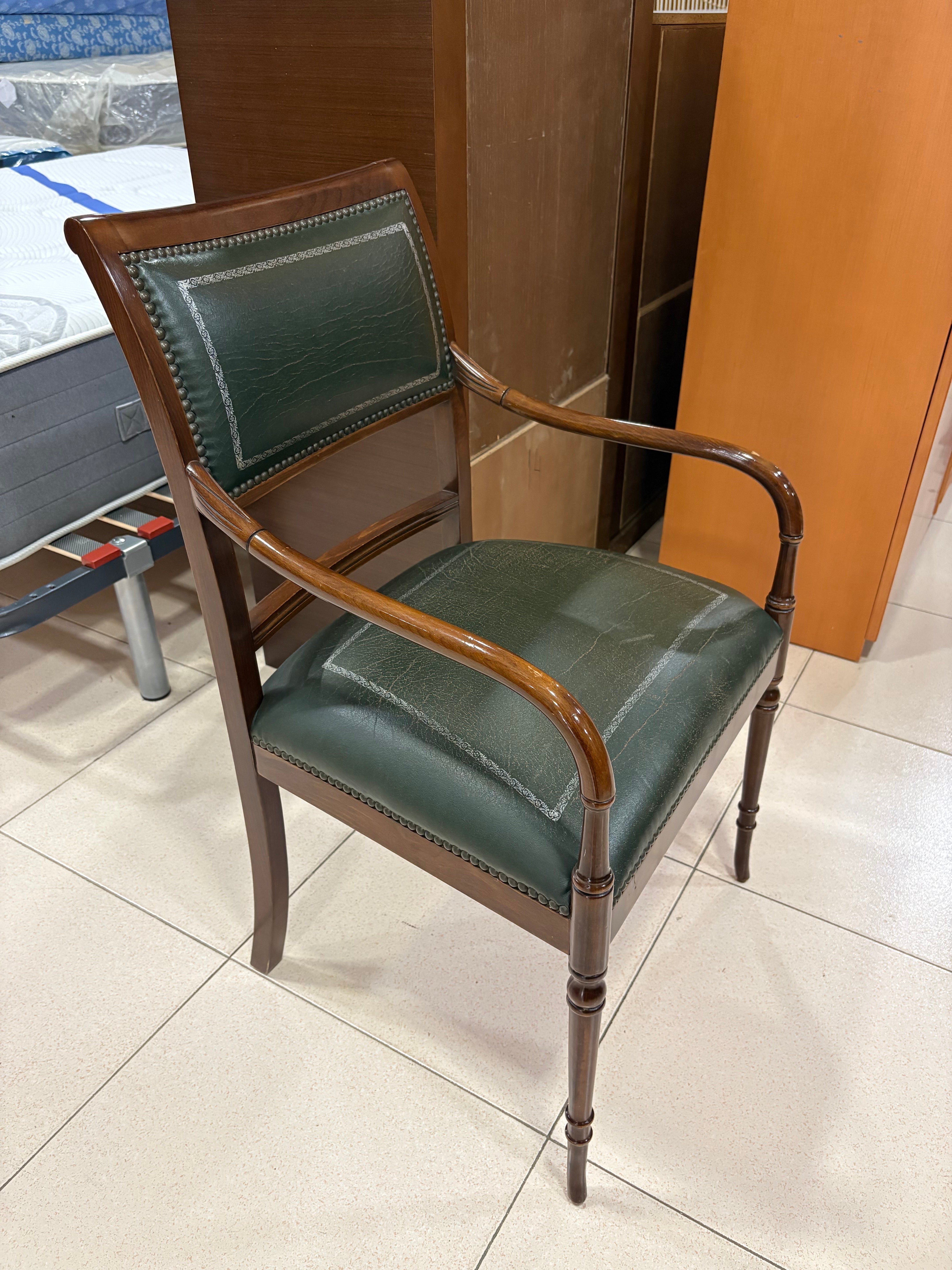 Elegante silla con un diseño clásico que evoca el estilo vintage. Su estructura de madera se complementa a la perfección con el tapizado.