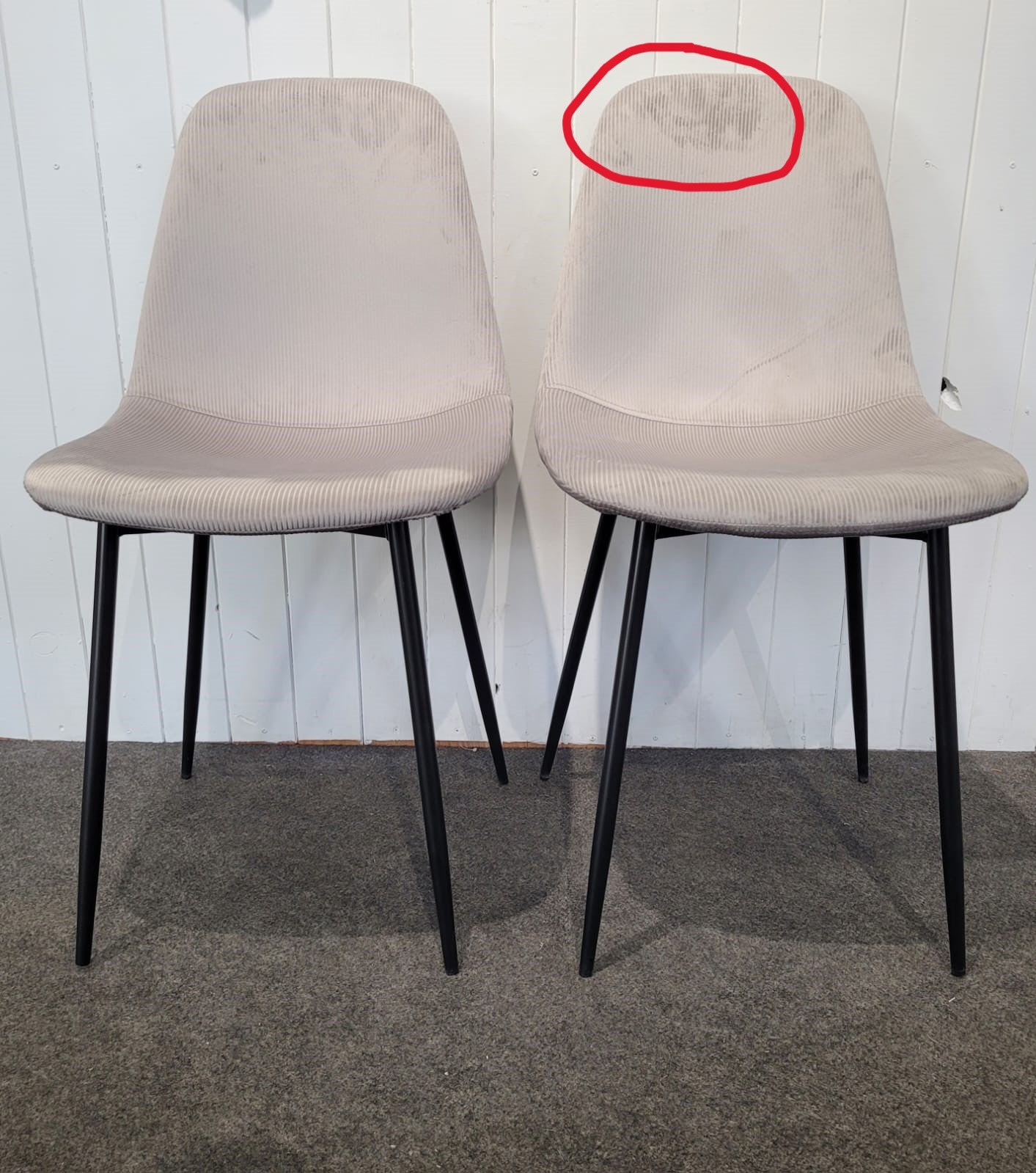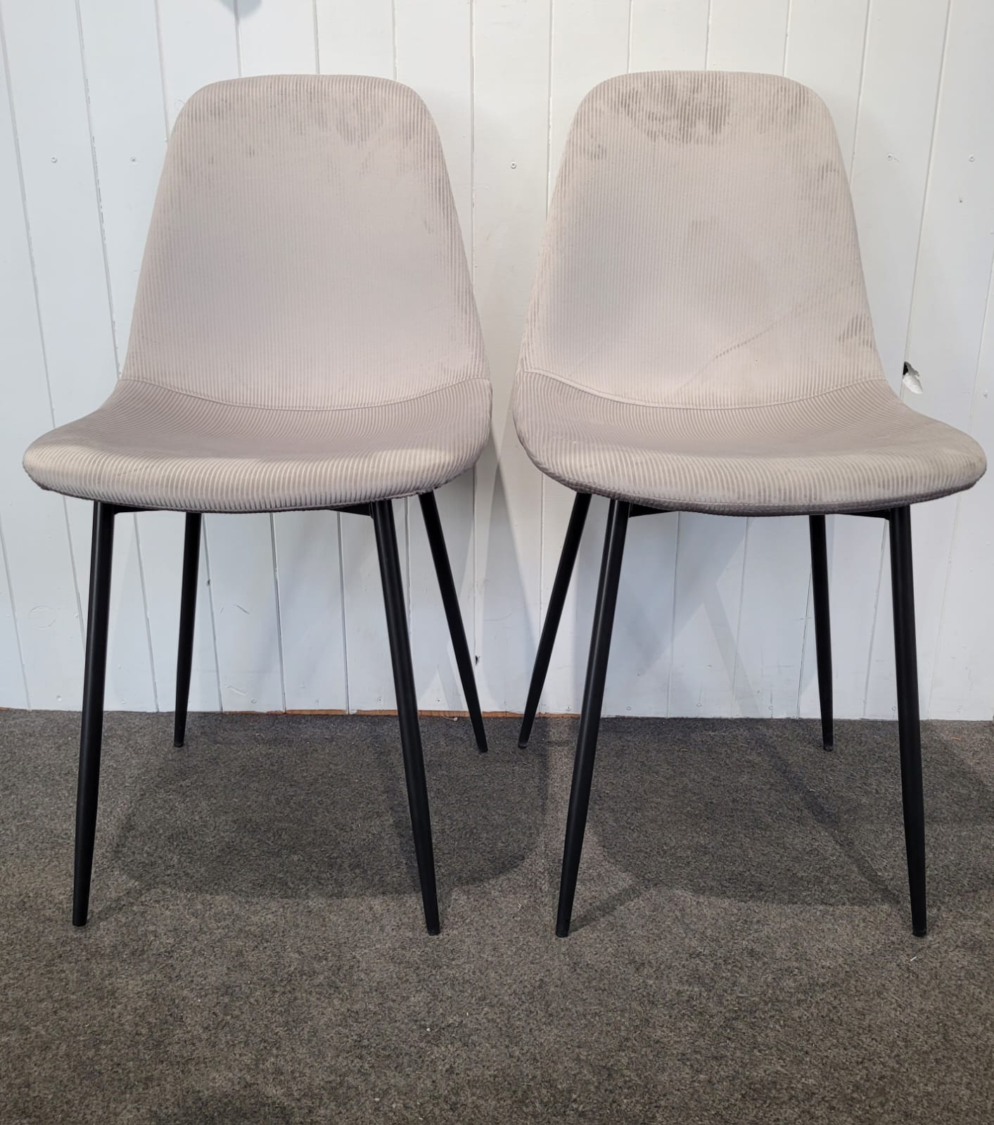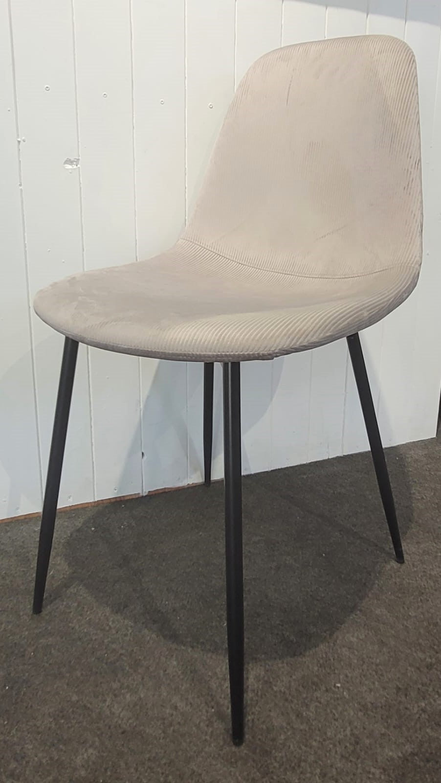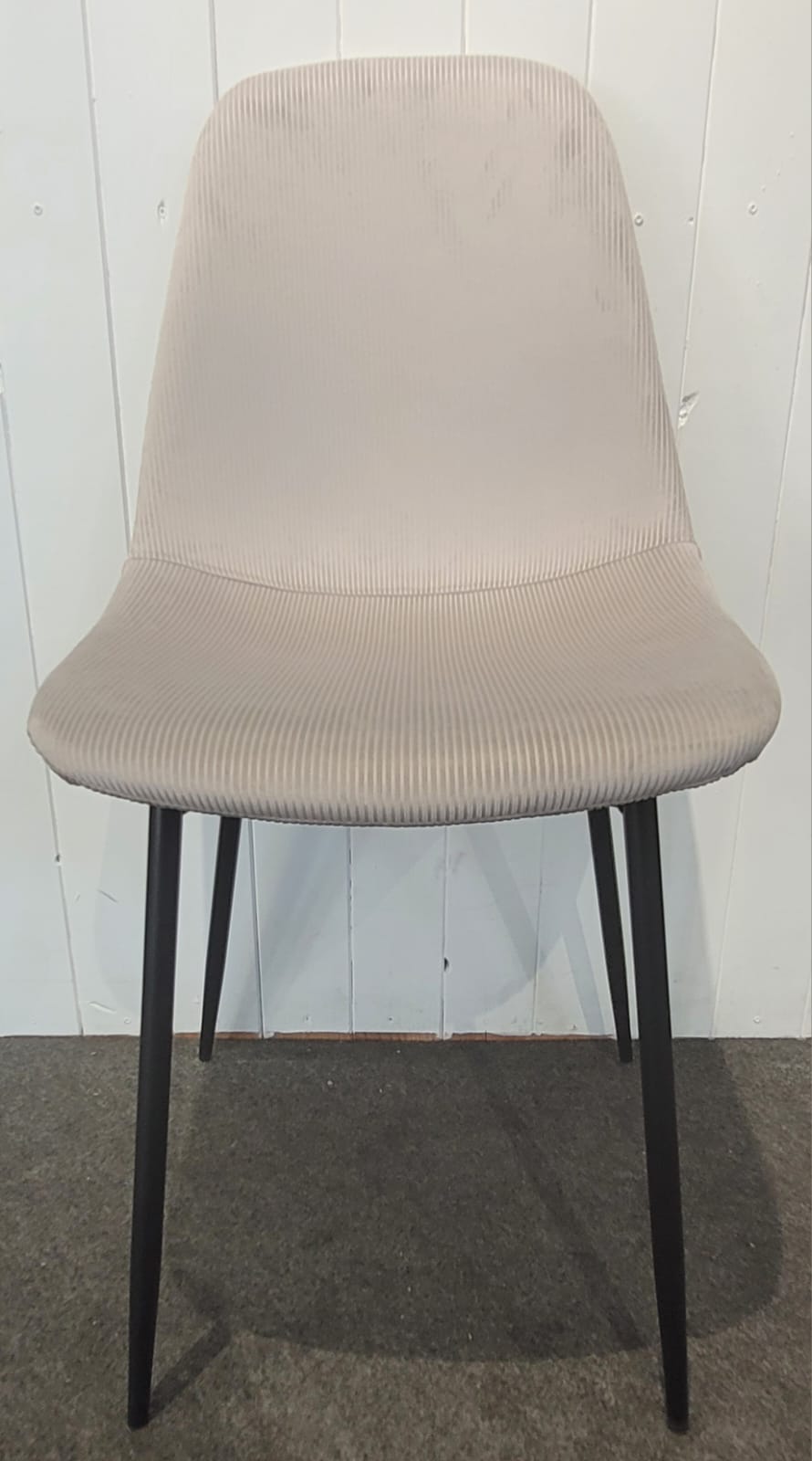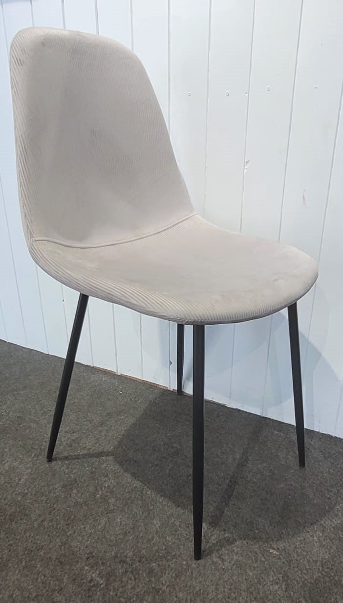 Descripción Silla de estilo moderno y elegante para comedor o cualquier instancia de casa. Respaldo semicurvo, ergonómico. Tapizado de tela suave al tacto. Disponemos de dos iguales. 30€ cada una.