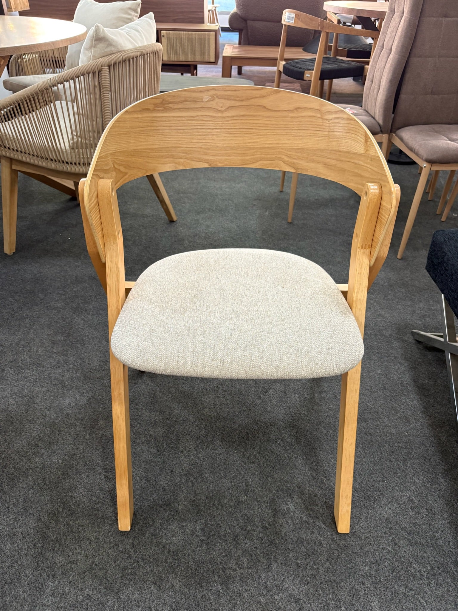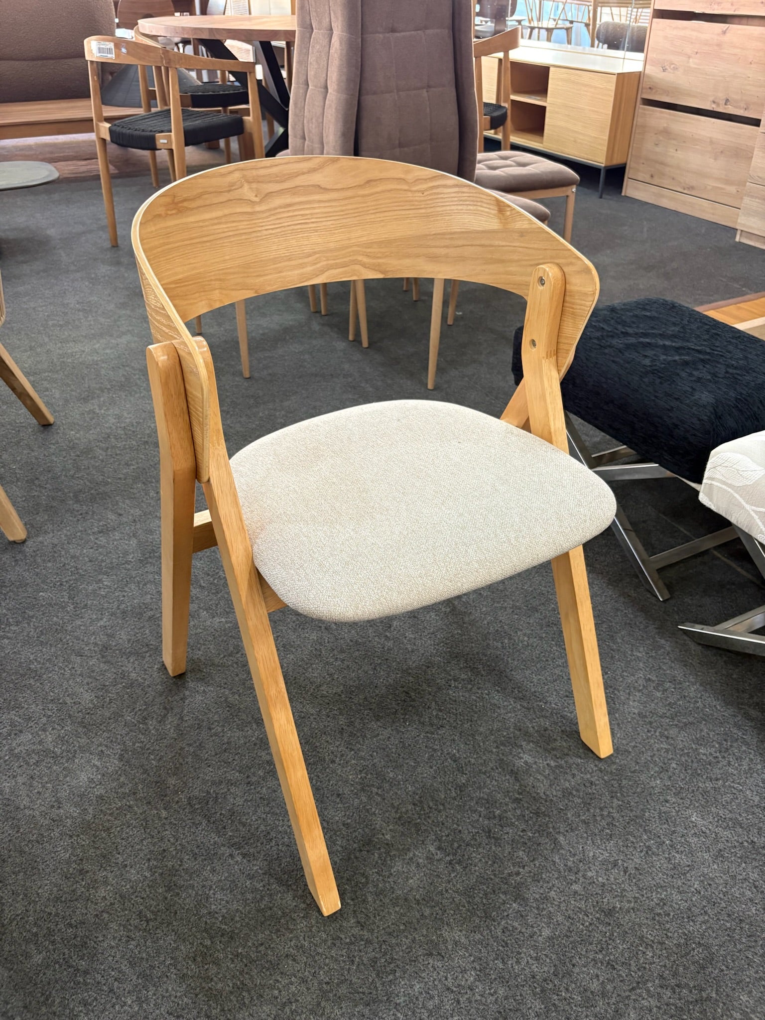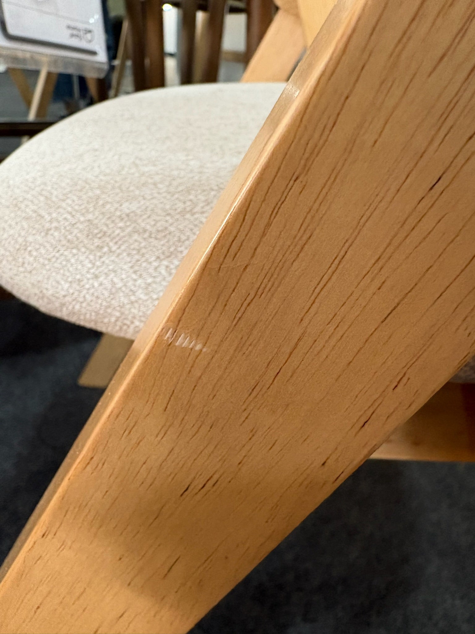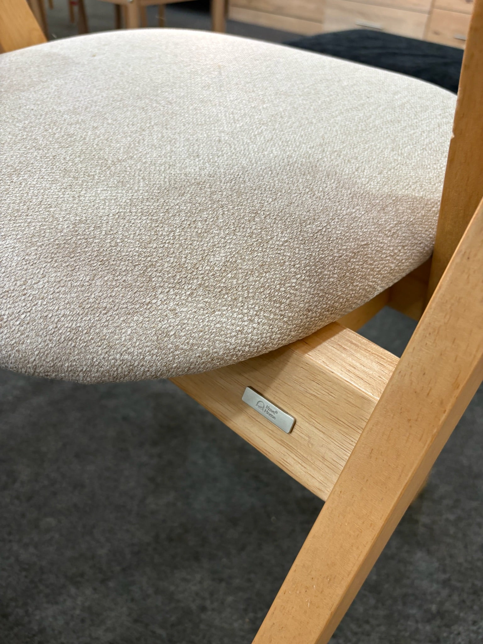 - Asiento tapizado con chenilla de estructura pequeña beige, hecha de poliéster reciclado.