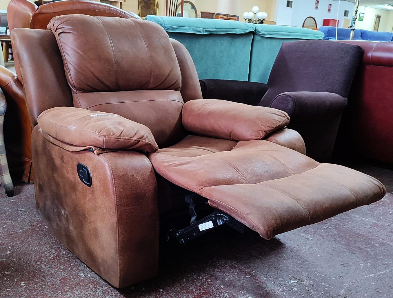 Forma del producto SILLÓN RELAX 95x80x90 cm €90,00IVA incluido SKU: MR-0072456-E Recogida gratuita en nuestra(s) tienda(s) Contáctanos por WhatsApp Estado: En buen estadoMedidas: Largo 95 cm, Profundidad 80/135 cm, Alto 90 cm.Color: MarrónDefecto: no tiene