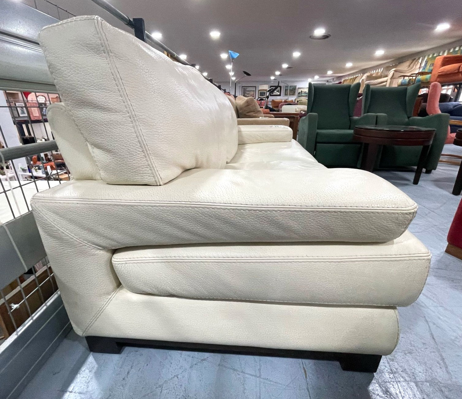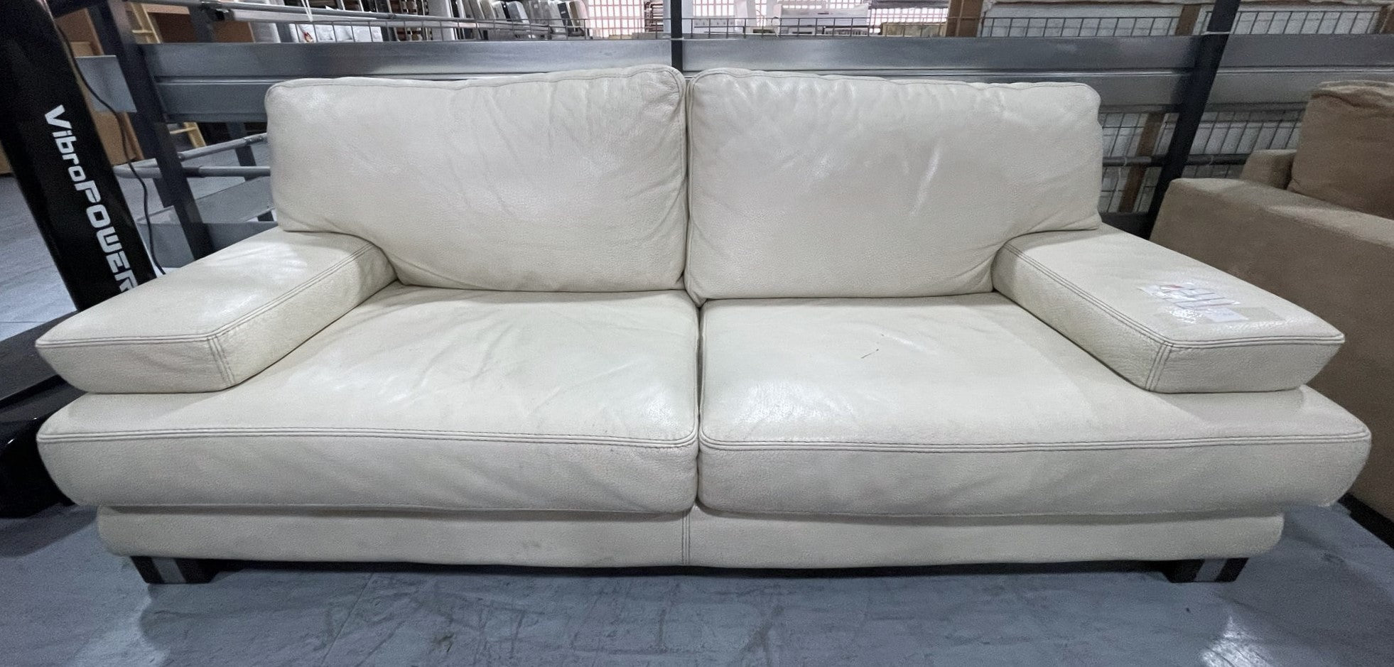 Descripción Sillón de diseño elegante en polipiel blanca, perfecto para agregar un toque de frescura y modernidad a tu espacio. Cuenta con amplias dimensiones para ofrecer una comodidad óptima. Ideal para salones o áreas de descanso. La tela presenta algunos defectos visibles, como se muestra en las fotografías. Defectos: La tela presenta algunos defectos visibles, como se muestra en las fotografías.