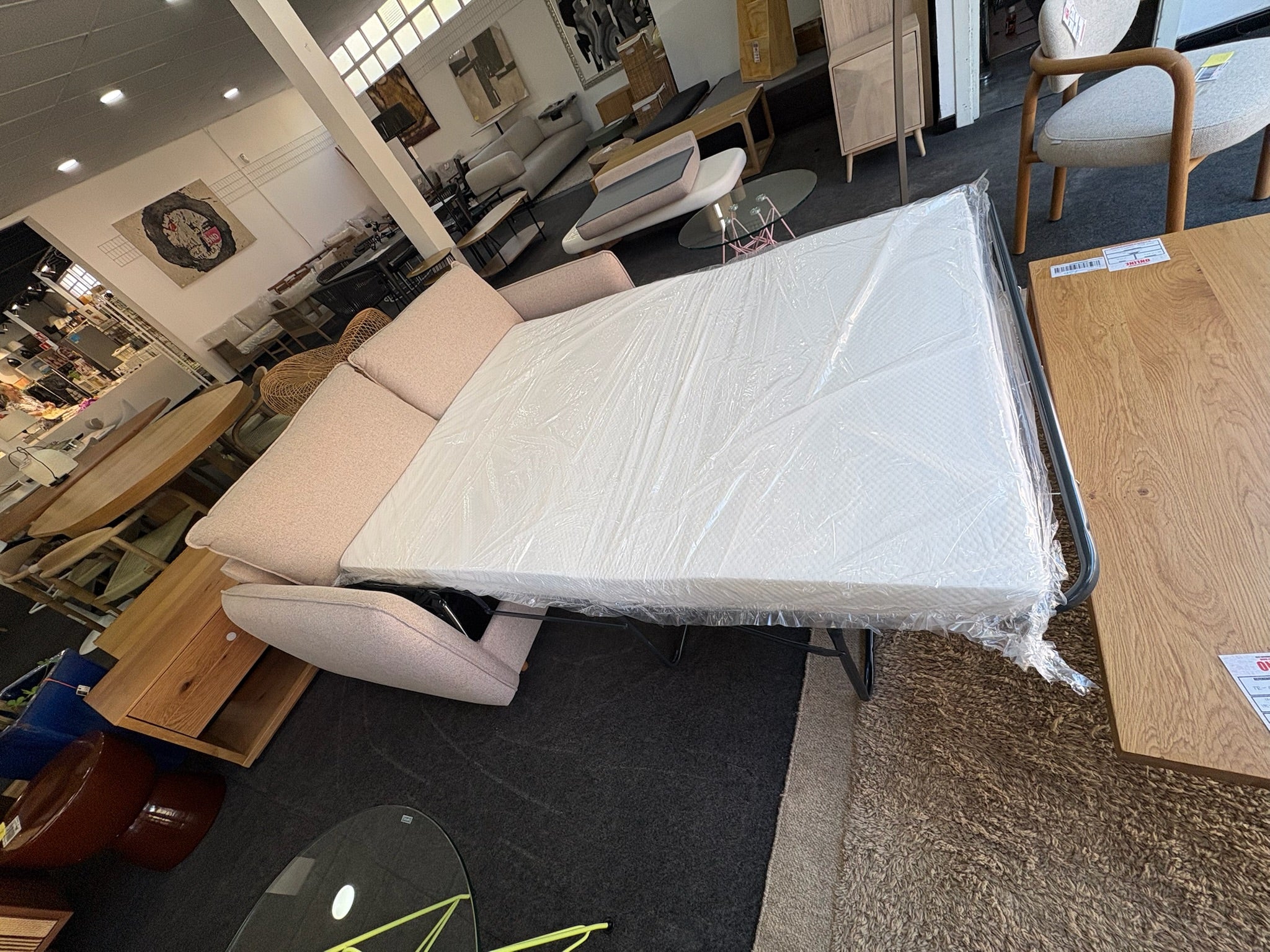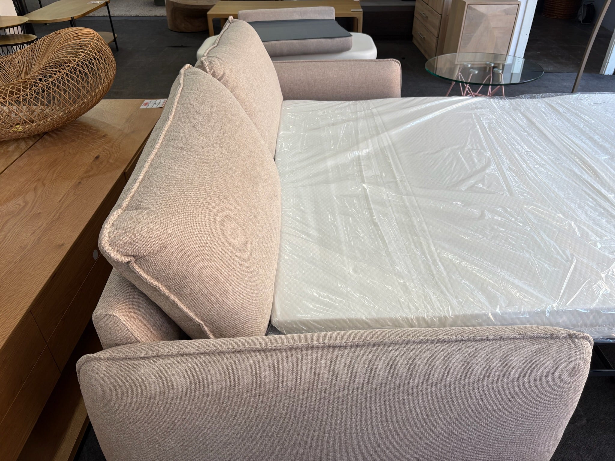 - Sofá cama tapizado con un tejido estructurado de alta resistencia a la abrasión y apto para lavado a máquina.