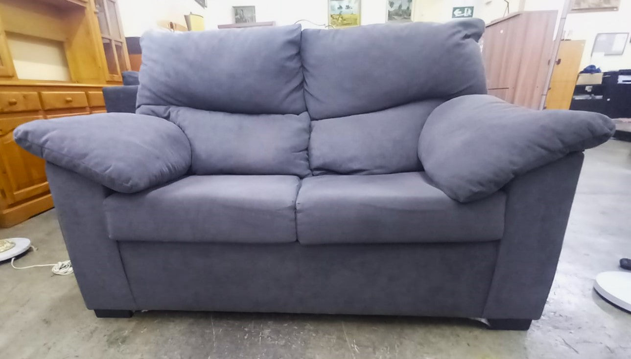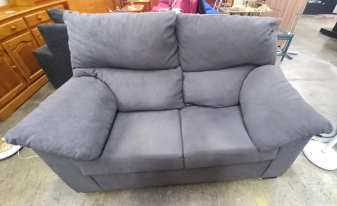 Descripción Sofá de dos plazas perfecto para la sala, estudio o zona de descanso. Tapizado en tela gris, un color neutro que se adapta fácilmente a cualquier decoración. Estructura resistente y asiento cómodo, ideal para relajarse y disfrutar.